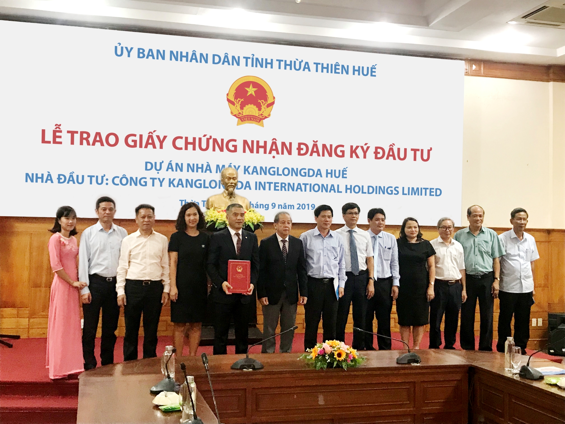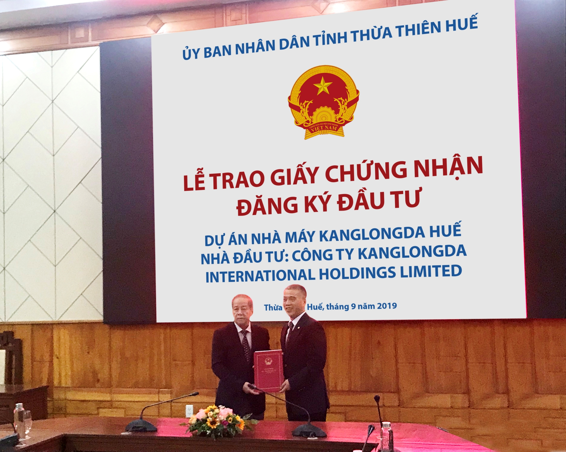 Ngày 26/09/2019, UBND tỉnh Thừa Thiên - Huế đã trao Giấy chứng nhận đăng ký đầu tư cho Công ty TNHH Kanglongda để chuẩn bị triển khai nhà máy sản xuất đầu tiên tại Việt Nam.