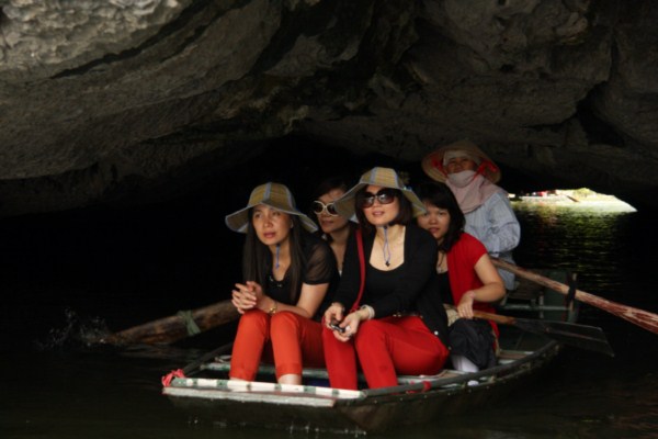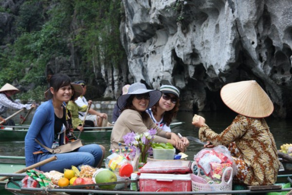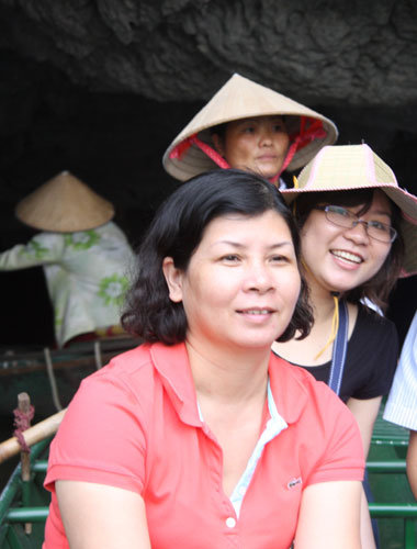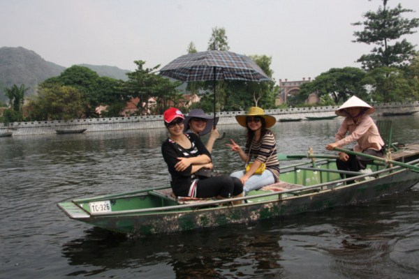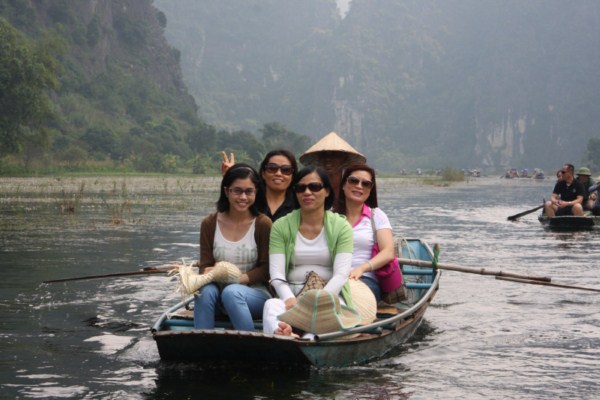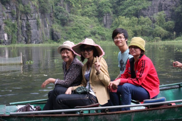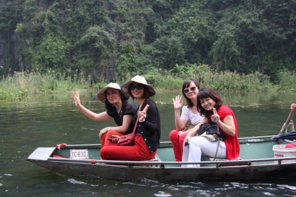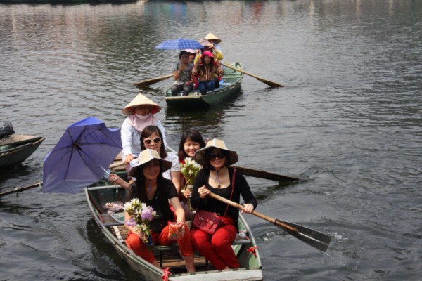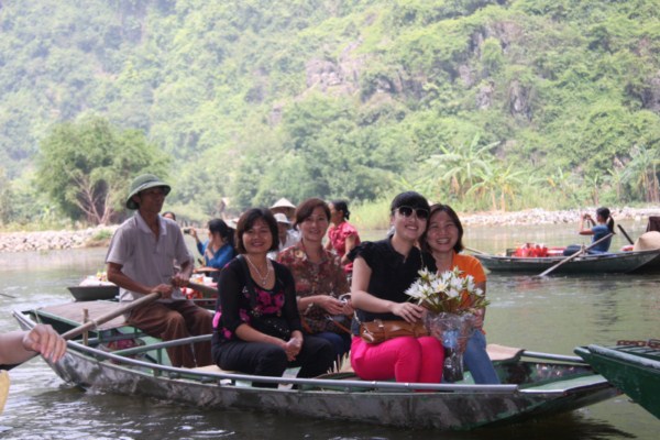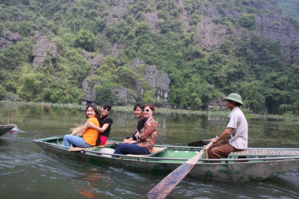 Sau khi tham quan Bích Động, đoàn đã xuống đò tham quan Tam Cốc - nơi được ví như Vịnh Hạ Long trên cạn