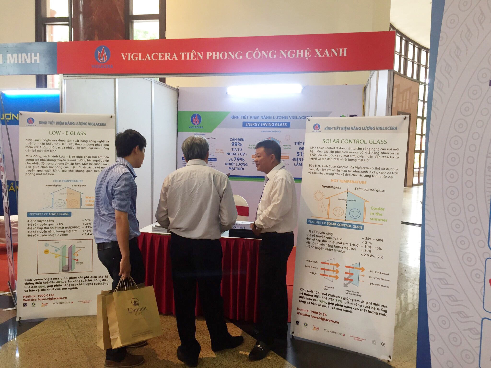 Tại gian hàng giới thiệu sản phẩm trong khu vực Lễ trao giải, khách thăm quan được trải nghiệm thực tế về kính Tiết kiệm năng lượng Viglacera bằng những so sánh trực quan tại gian hàng. Sản phẩm được sản xuất trên dây chuyền công nghệ Xanh hiện đại từ CHLB Đức, có tác dụng ngăn đến 99% tia tử ngoại, cản đến 79% nhiệt lượng mặt trời và tiết kiệm đến 51% điện năng.
