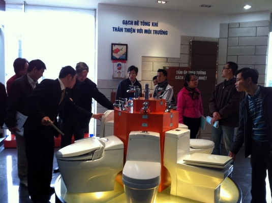 Tại buổi làm việc, Đoàn khách mời Tổng công ty xây dựng Hà Nội cũng dành thời gian thăm quan căn hộ mẫu Thăng Long Number 1 có sử dụng các sản phẩm vật liệu xây dựng Viglacera và Showroom trưng bày sản phẩm Viglacera tại Tòa nhà Trụ Sở Tổng công ty.