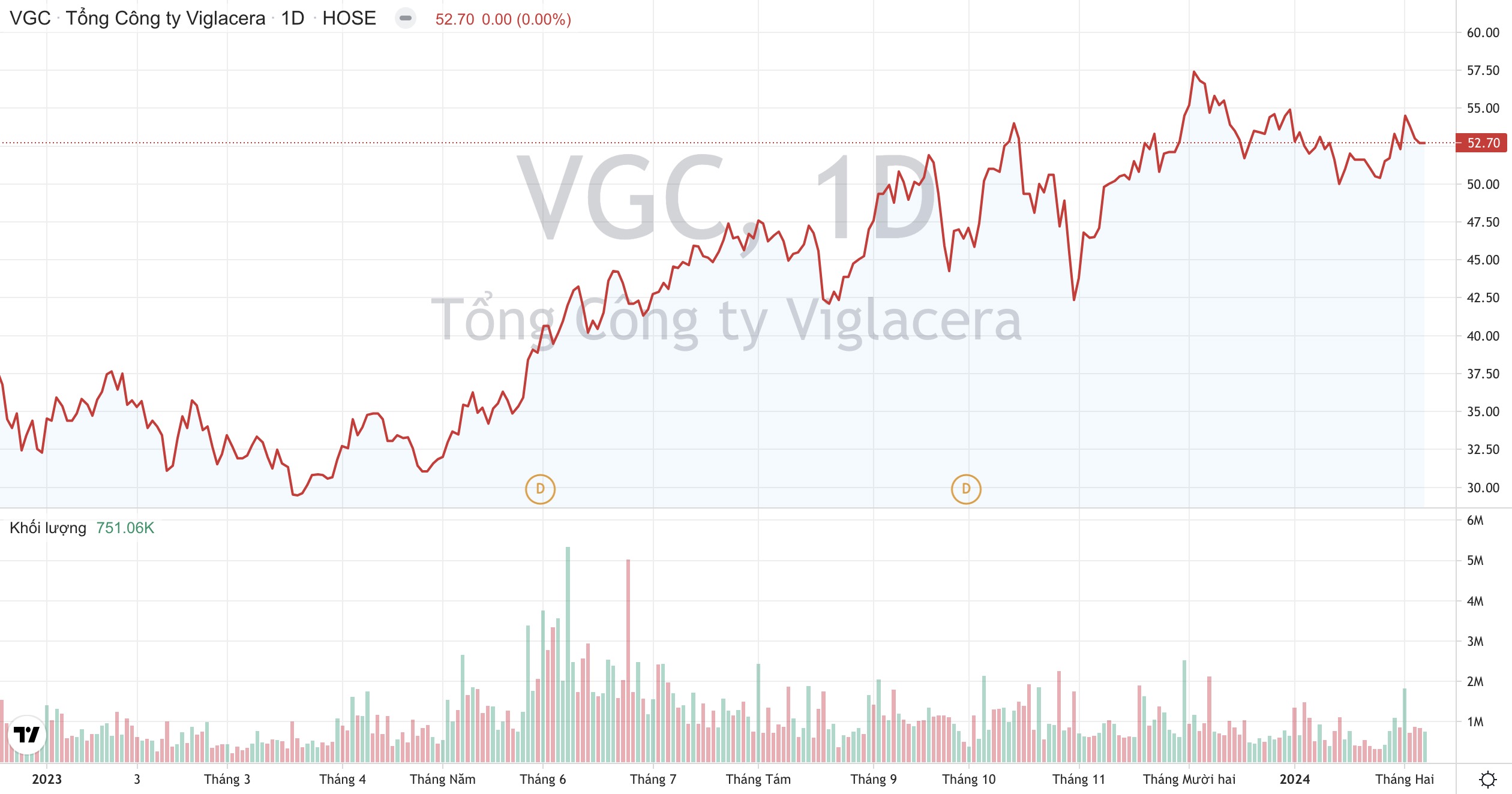 TCCT Doanh số xuất khẩu tháng 1/2024 của Tổng Công ty Viglacera (mã cổ phiếu VGC) đã tăng 11% so với cùng kỳ năm trước, đạt 2,63 triệu USD. Hiện doanh nghiệp này đang đẩy mạnh xuất khẩu các sản phẩm thiết bị vệ sinh sang thị trường Mỹ và châu Âu.