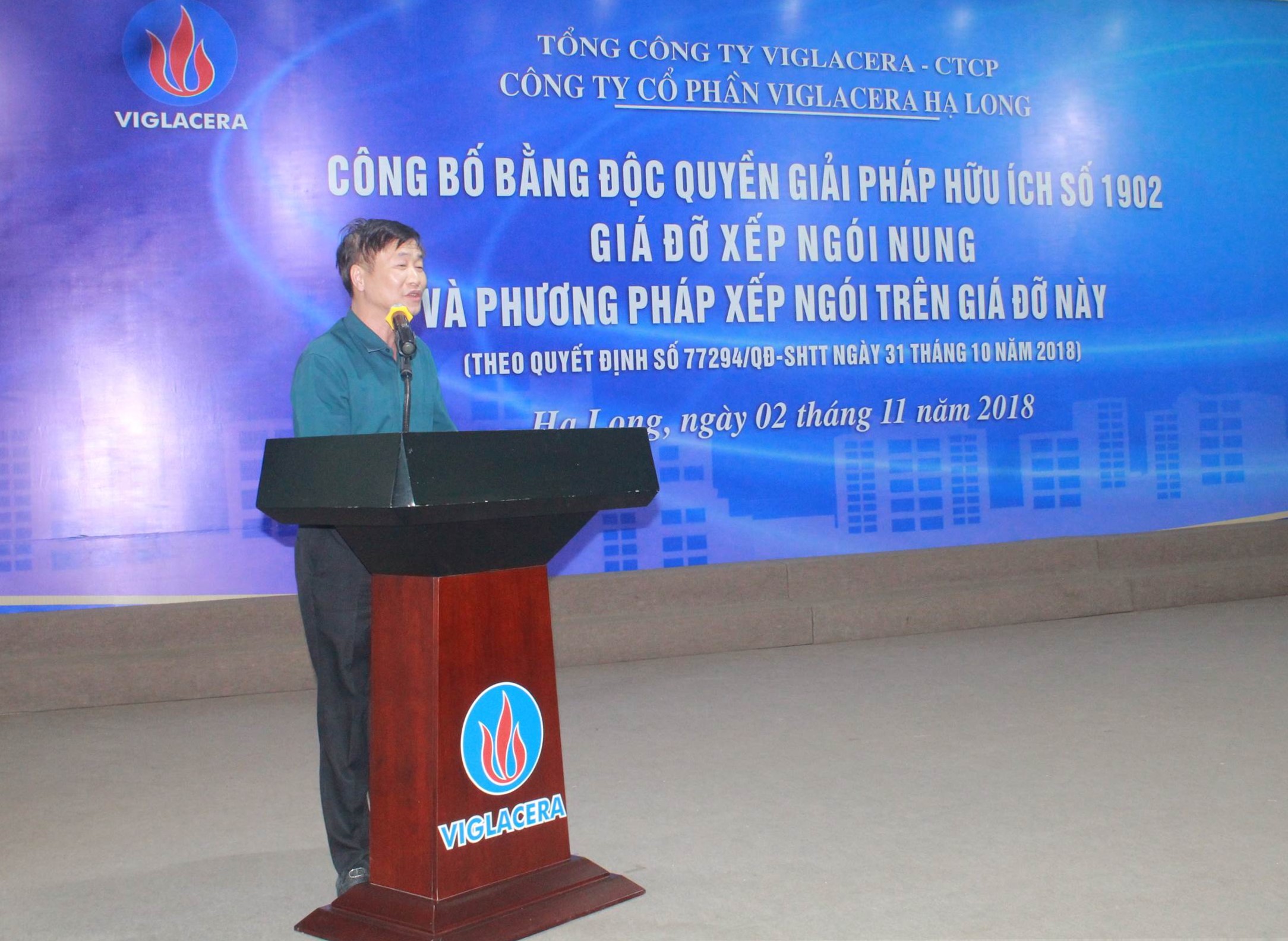 Trong những năm gần đây, Công ty CP Viglacera Hạ Long luôn tìm tòi các giải pháp phát huy sáng kiến kỹ thuật, giải pháp công nghệ nhằm nâng cao chất lượng sản phẩm, tăng năng suất lao động. Năm 2018, giải pháp “Giá đỡ xếp ngói nung và phương pháp xếp ngói trên giá đỡ này” đã nhận được Bằng độc quyền giải pháp hữu ích số 1902 do Cục sở hữu trí tuệ cấp.