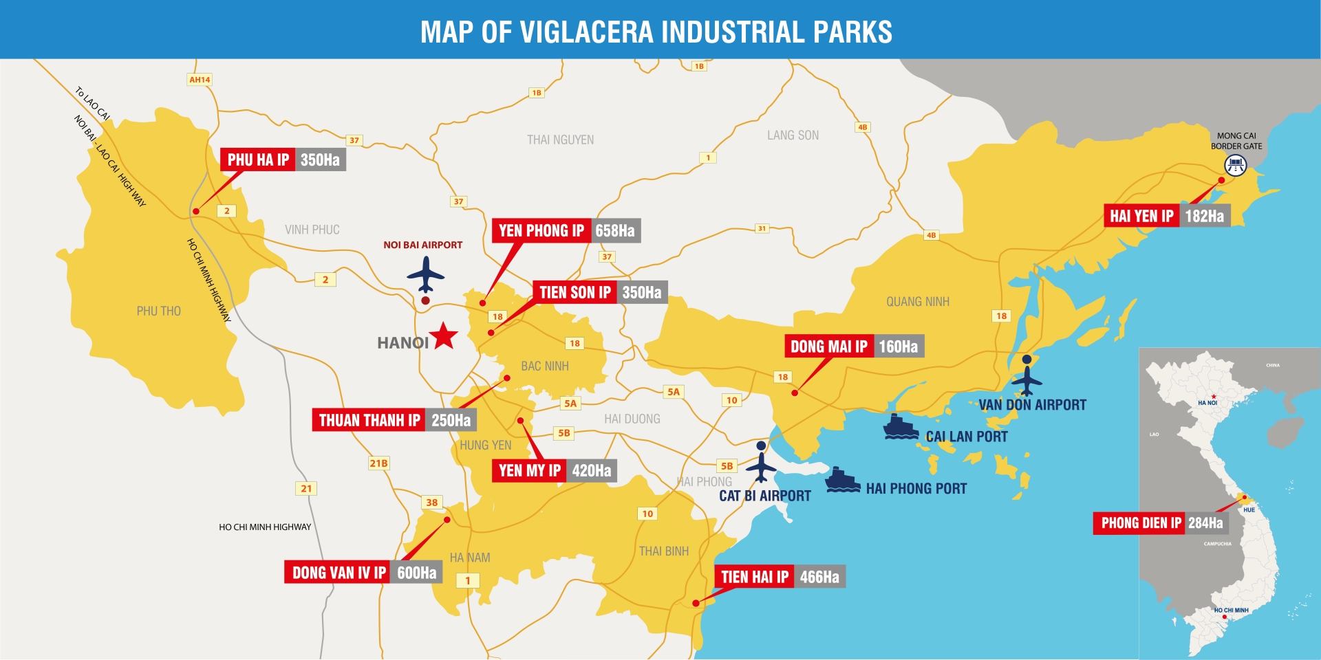 Khẳng định thương hiệu Doanh nghiệp uy tín hàng đầu tại Việt nam trong lĩnh vực đầu tư phát triển hạ tầng và quản lý Khu công nghiệp, Viglacera đã được Thủ tướng Chính phủ giao các Quyết định phê duyệt chủ trương đầu tư dự án xây dựng hạ tầng kỹ thuật khu công nghiệp Yên Phong II-C tỉnh Bắc Ninh tại QĐ số 1139/QĐ-TTg ngày 11/9/2018 và Phê duyệt chủ trương đầu tư dự án xây dựng, kinh doanh kết cấu hạ tầng KCN Yên Mỹ tỉnh Hưng Yên tại văn bản số 712/TTg-CN ngày 30/5/2018. Các dự án này đang được Tổng công ty gấp rút triển khai các thủ tục tiếp theo để các KCN Yên Phong II-C và Yên Mỹ sớm đưa vào hoạt động.