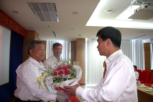 Đồng chí Nguyễn Anh Tuấn - Bí thư Đảng ủy, Tổng giám đốc Tổng công ty –  đã trao bó hoa tươi thắm đồng thời nhiệt liệt chúc mừng đồng chí Nguyễn Mạnh Đạt được vinh dự trao tặng Huy hiệu 30 năm tuổi Đảng.