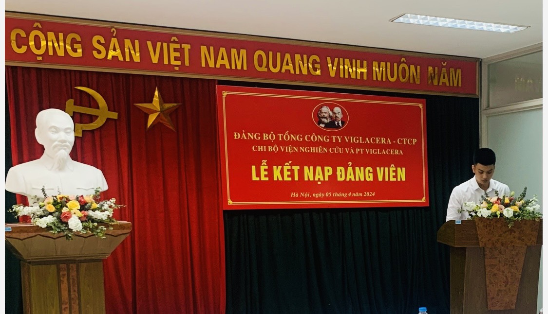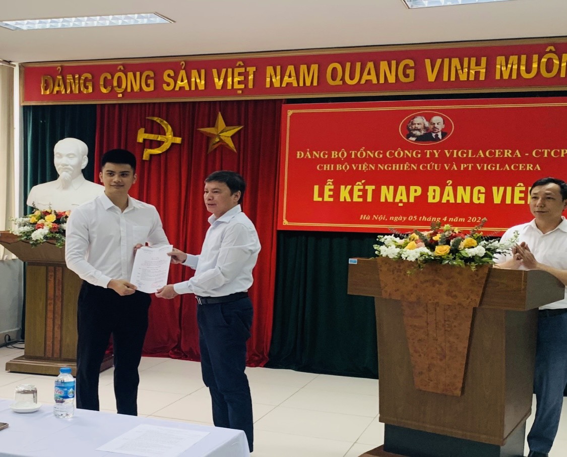 Thực hiện Quyết định số 3057-QĐ/QU ngày 28/3/2024 của Ban thường vụ Quận ủy Cầu Giấy về việc chuẩn y kết nạp đảng viên. Ngày 05/4/2024 Chi bộ Viện Nghiên cứu và Phát triển Viglacera long trọng tổ chức Lễ kết nạp quần chúng ưu tú Phạm Minh Vương vào Đảng Cộng sản Việt Nam. Nhằm tăng cường lực lượng đảng viên, tăng sức chiến đấu và năng lực lãnh đạo của Chi bộ.