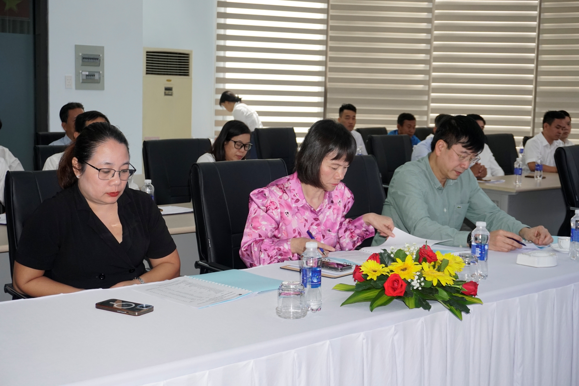 Đoàn Chủ tịch điều hành Hội nghị gồm: Ông Nguyễn Minh Khoa Giám đốc Công ty, ông Lê Anh Lịch - Chủ tịch Công đoàn Công ty, bà Hồ Thị Minh Thu - Trưởng Ban Nữ công Công ty