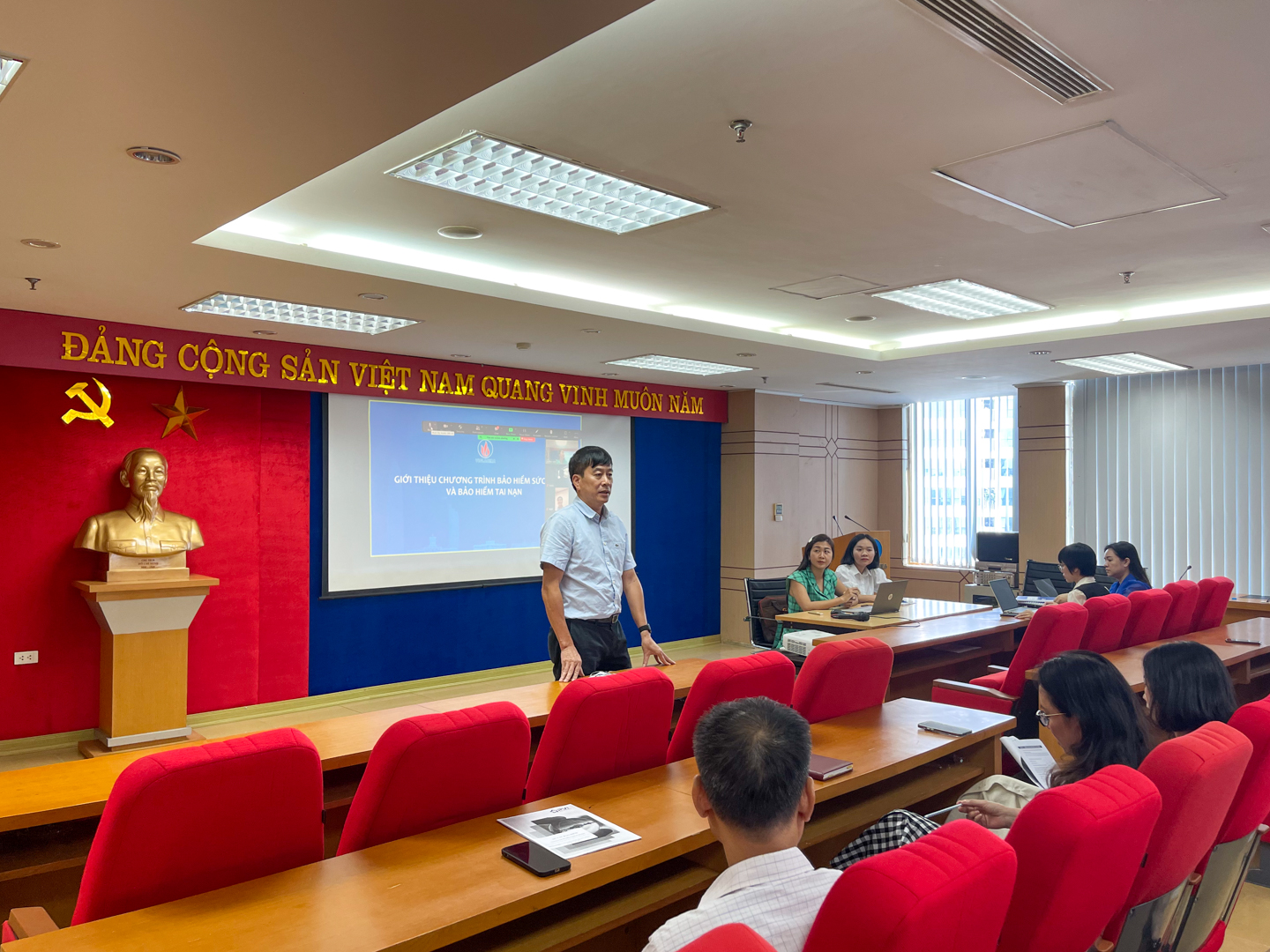Tham dự buổi đào tạo có đại diện lãnh đạo Tổng công ty, Công đoàn Tổng công ty, Công đoàn Văn phòng Công ty Mẹ và đại diện đơn vị bảo hiểm PVI.