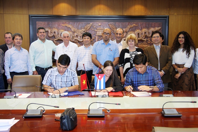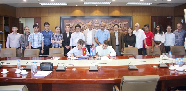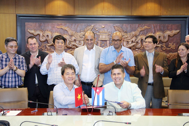 Tổng giám đốc TCT Viglacera – CTCP Nguyễn Anh Tuấn và Ngài Antonio Amaury Media Morante – Tổng giám đốc Tập đoàn phát triển chiến lược, Đặc phái viên Bộ trưởng Bộ Xây dựng Cuba ký biên bản ghi nhớ