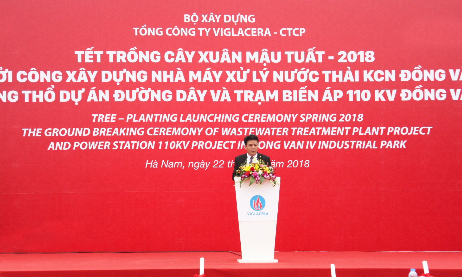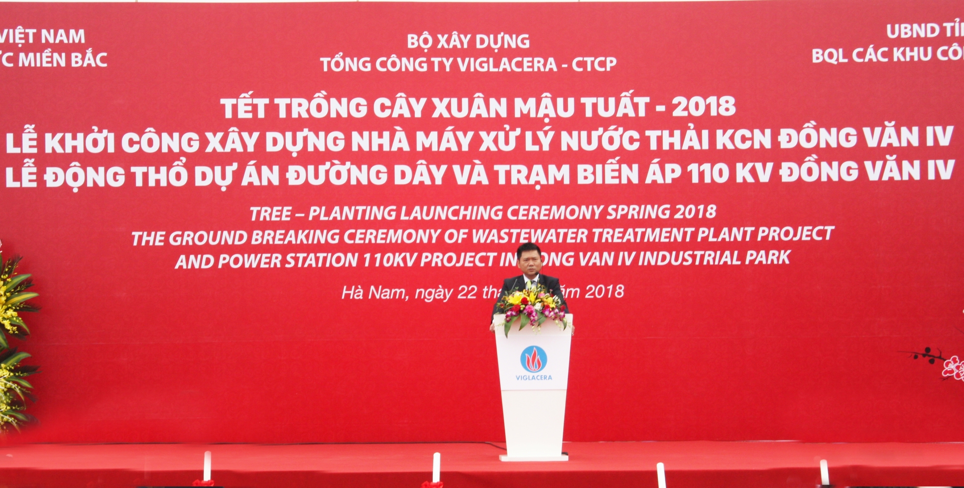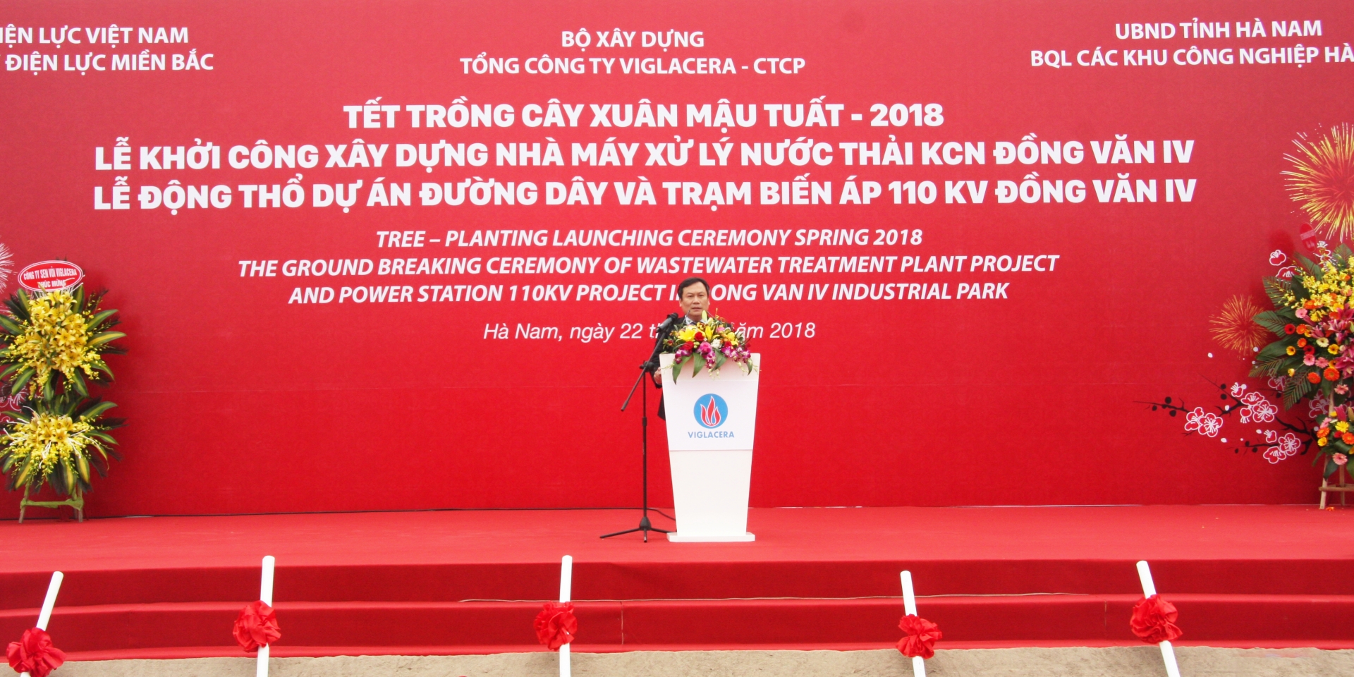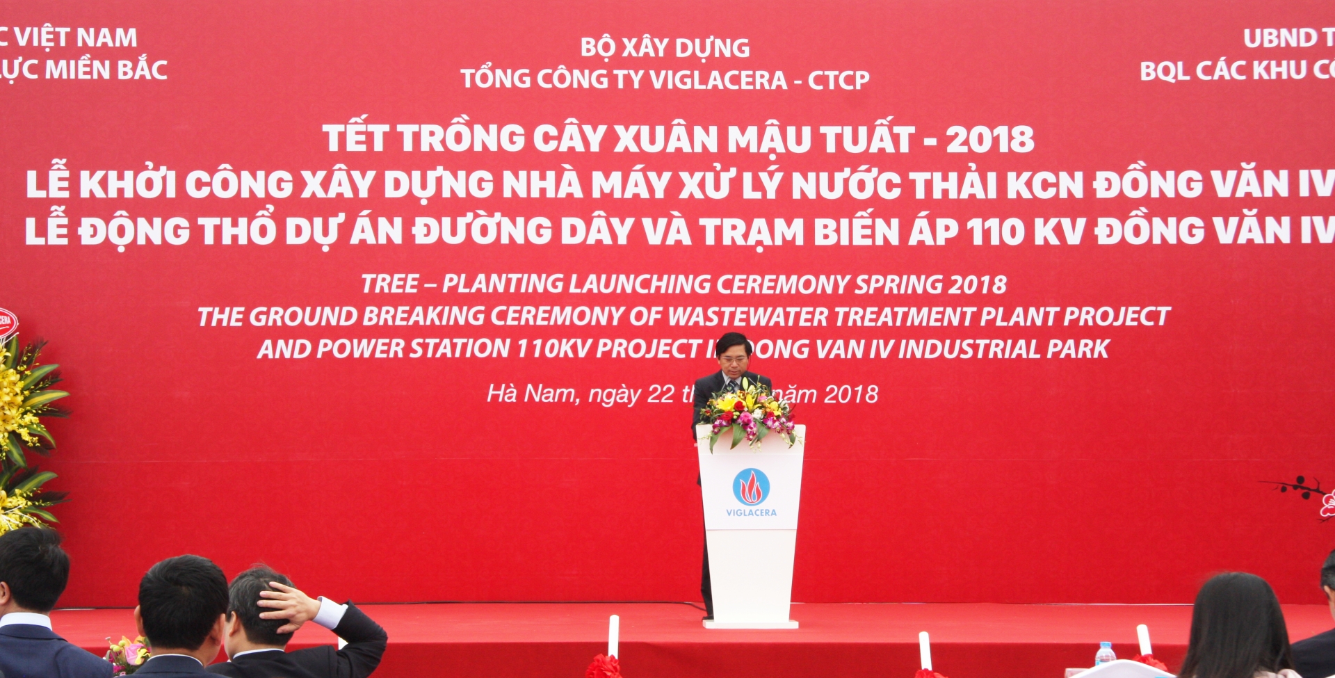 Tiếp nối các sự kiện đầu xuân mới, sáng ngày Mùng 7 Tết Mậu Tuất (22/02/2018), Tổng công ty Viglacera – CTCP long trọng tổ chức Lễ phát động Tết trồng cây Xuân Mậu Tuất 2018, Động thổ dự án đường dây và trạm biến áp 110 Kv đồng thời tổ chức Khởi công xây dựng Nhà máy xử lý nước thải khu công nghiệp Đồng Văn IV – tỉnh Hà Nam, với mục tiêu dự án sẽ tiếp tục thu hút thành công nhiều hơn nữa các nhà đầu tư lớn trong các lĩnh vực điện tử, công nghiệp công nghệ cao.