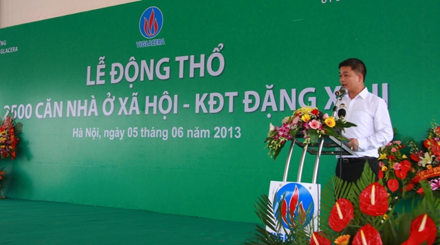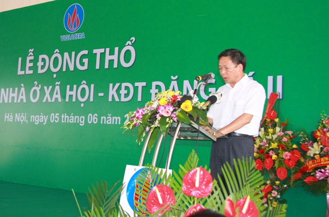 Phát biểu tại buổi Lễ, Bộ trưởng BXD Trịnh Đình Dũng đã nhấn mạnh: “Việc động thổ 2.500 căn nhà ở xã hội tại Khu đô thị Đặng Xá 2 huyện Gia Lâm, thành phố Hà Nội do Viglacera làm chủ đầu tư là dự án nhà ở thương mại được UBND thành phố và Bộ Xây dựng chấp thuận cho phép chuyển đổi thành dự án nhà ở xã hội, và là một trong những dự án nhà ở xã hội đầu tiên trên địa bàn Thủ đô cũng như cả nước hưởng ứng thực hiện các giải pháp tháo gỡ khó khăn cho thị trường bất động sản gắn với thực hiện Chiến lược nhà ở quốc gia. Dự án này khi hoàn thành vào năm 2015 sẽ kịp thời đáp ứng một phần nhu cầu về nhà ở xã hội của Hà Nội. Bộ trưởng Trịnh Đình Dũng cũng đánh giá cao nỗ lực của Viglacera, một Tổng công ty nhà nước có năng lực và nhiều kinh nghiệm trong đầu tư phát triển nhà ở, luôn tiên phong trong việc tạo ra những khu đô thị có chất lượng. Tổng công ty đã có nhiều cố gắng, chú trọng lựa chọn các giải pháp thiết kế hợp lý nhằm đảm bảo chất lượng công trình, hạ giá thành xây dựng nhưng vẫn đảm bảo tiện nghi, thuận tiện, an toàn cho người sử dụng khi đưa vào vận hành”