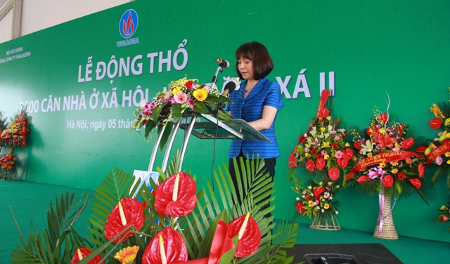 Bộ trưởng BXD Trịnh Đình Dũng phát biểu tại Lễ động thổ 2500 căn nhà ở xã hội TCT Viglacera