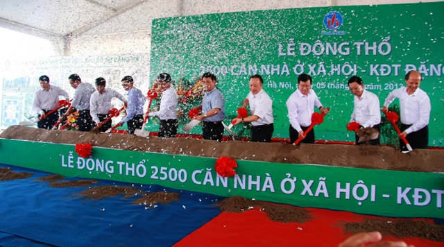 Tiếp tục triển khai thực hiện Chiến lược phát triển nhà ở Quốc gia đến năm 2020 và tầm nhìn 2030 đã được Thủ tướng Chính phủ phê duyệt tại Quyết định số 2127/QĐ-TTg ngày 30/11/2011 và “Chương trình phối hợp hành động triển khai chiến lược phát triển nhà ở đến năm 2020 và tầm nhìn đến năm 2030” được Bộ Xây dựng và UBND thành phố Hà Nội ký kết tháng 7/2012, ngày 05/06/2013, tại Khu đô thị (KĐT) Đặng Xá, Gia Lâm, Hà Nội, được sự chỉ đạo và chấp thuận của Bộ Xây dựng, UBND thành phố Hà Nội, Tổng công ty Viglacera đã long trọng tổ chức Lễ động thổ 2500 căn nhà ở xã hội (NƠXH). Đây là một trong những dự án tiên phong thực hiện theo tinh thần trong những dự án đầu tiên thực hiện nội dung Nghị quyết số 02/NQ-CP ngày 07 tháng 01 năm 2013 của Chính phủ đồng thời là một trong những dự án đầu tiên được khởi động để đón gói hỗ trợ 30.000 tỷ đồng của Chính Phủ vừa được Bộ Xây dựng và Ngân hàng nhà nước chính thức ban hành các thông tư hướng dẫn (Thông tư 11 của NHNN (có hiệu lực từ 1/6/2013) và Thông tư 07 của Bộ Xây dựng ban hành ngày 15/5/2013).