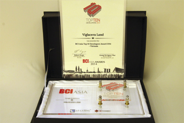 Ngày 31.05.2013, tại khách sạn Nikko Saigon - BCI Asia đã tổ chức lễ trao giải BCI Asia Top 10 Awards cho các công ty kiến trúc và chủ đầu tư hàng đầu của Việt Nam. Viglacera Land được vinh danh là một trong mười chủ đầu tư năng động nhất. Đây là năm thứ 3 liên tiếp, Viglacera Lan nhận được giải thưởng uy tín này.