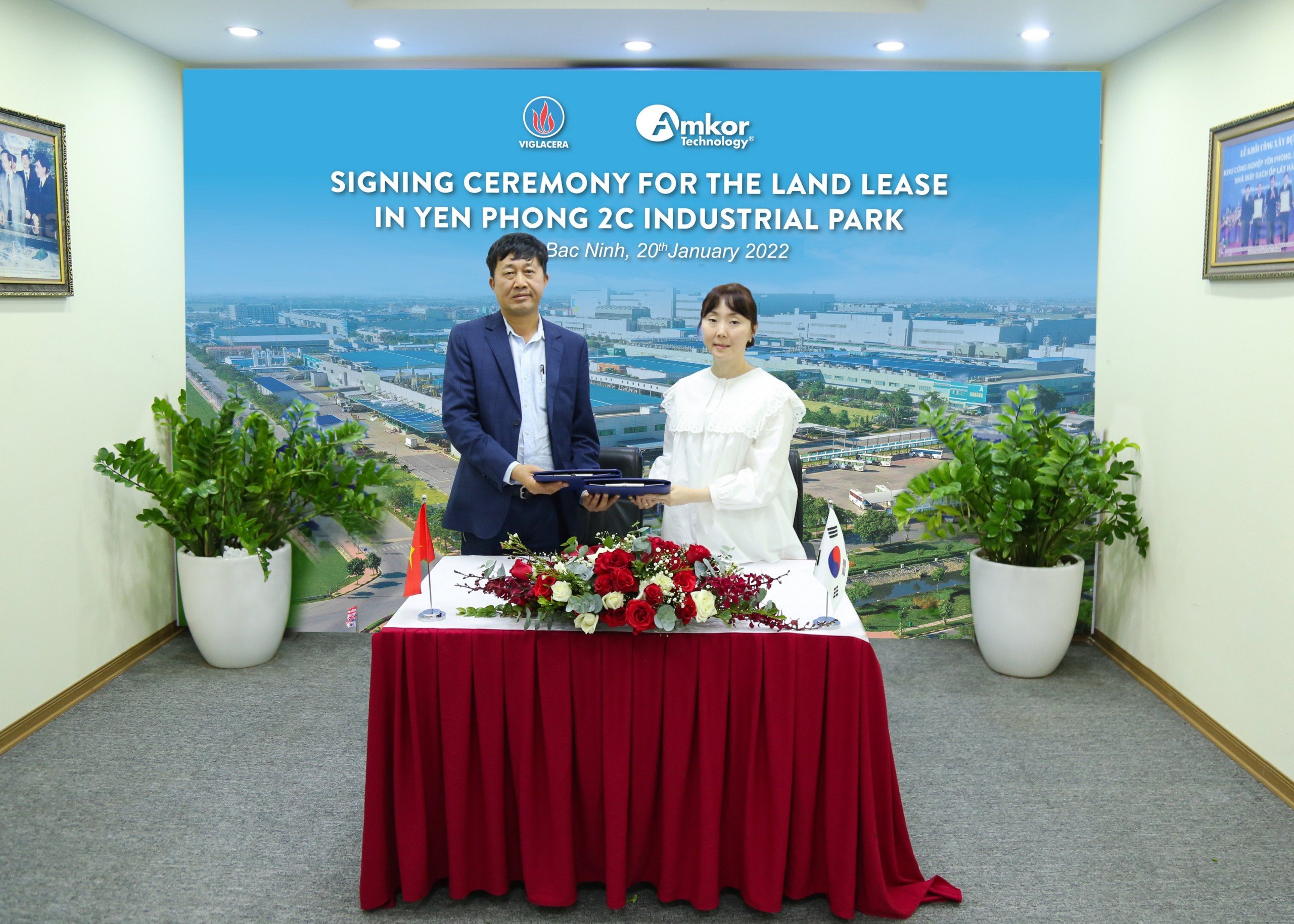 Viglacera ký kết với công ty Amkor đầu tư nhà máy quy mô lớn nhất toàn cầu tại KCN Yên Phong 2C được phát triển bởi Viglacera