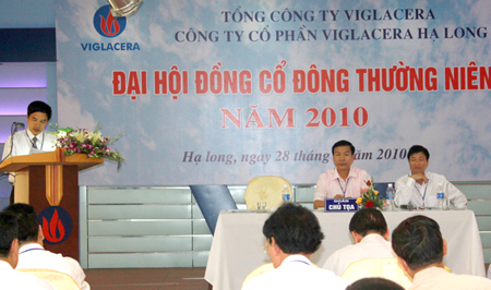 Đây là một trong những chỉ tiêu quan trọng được Đại hội đồng cổ đông thường niên 2010 của CTCP Viglacera Hạ Long diễn ra ngày 28/4 vừa qua đã thông qua.