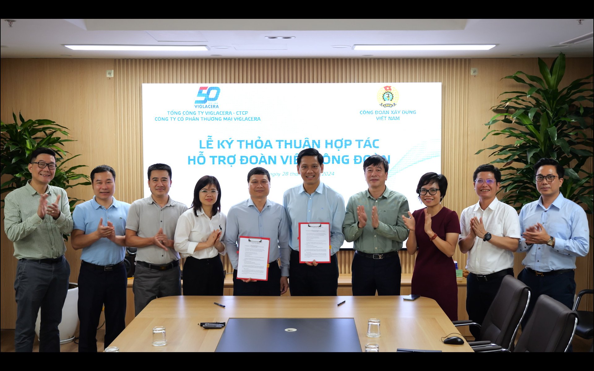 (Viglacera) – Ngày 28/3, tại Hà Nội, Công đoàn Xây dựng Việt Nam và Công ty Cổ phần Thương mại Viglacera (thuộc Tổng công ty Viglacera – CTCP) đã ký Thỏa thuận hợp tác hỗ trợ đoàn viên công đoàn, đơn vị, doanh nghiệp ngành Xây dựng.