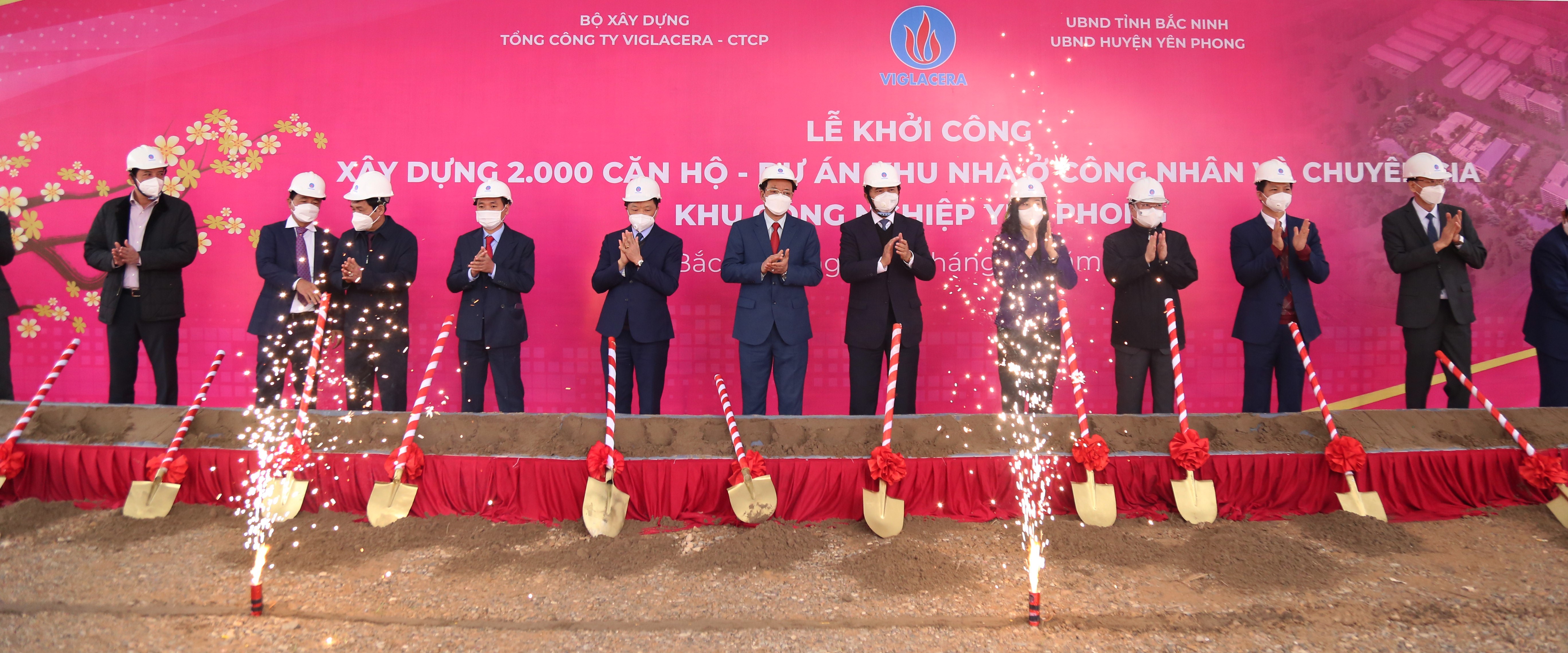 Thực hiện chủ trương của Đảng và Nhà nước, ngay trong những ngày đầu xuân năm mới, được sự quan tâm, tạo điều kiện, hỗ trợ tích cực của các cấp ủy Đảng và chính quyền tỉnh Bắc Ninh, Tổng Công ty Viglacera đã khởi công xây dựng 2.000 căn hộ, nhà ở cho công nhân và chuyên gia KCN Yên Phong. Ban Cán sự Đảng, Lãnh đạo Bộ Xây dựng ghi nhận, đánh giá cao và biểu dương sự nỗ lực, tinh thần trách nhiệm, chủ động, nhanh nhạy và quyết liệt của Tổng công ty trong việc phản ứng chính sách, thực hiện kịp thời các chủ trương, đường lối an sinh xã hội của Đảng và Nhà nước.