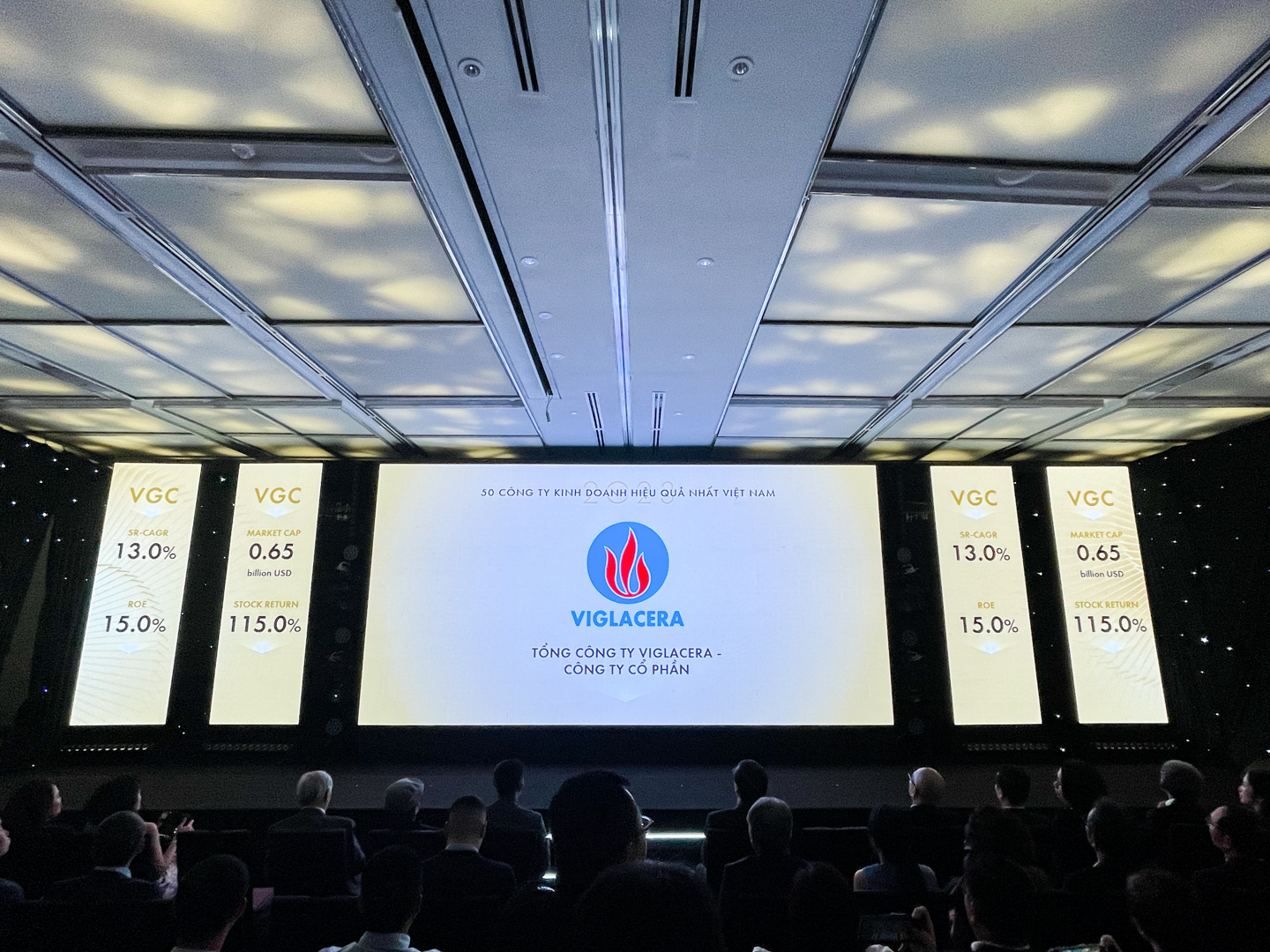 Vào ngày 16/09/2023, tại Khách sạn Pullman Saigon Centre, Tổng công ty Viglacera - CTCP (VGC) đã chính thức được vinh danh trong hạng mục "Top 50 Công ty kinh doanh hiệu quả nhất Việt Nam 2023"