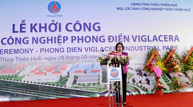 Phát biểu tại lễ khởi công, Phó Bí thư Tỉnh ủy - Chủ tịch UBND tỉnh Nguyễn Văn Cao ghi nhận và đánh giá cao những nỗ lực của TCT Viglacera - CTCP trong đầu tư xây dựng dự án chính thức tại Khu công nghiệp Phong Điền. Việc đầu tư của TCT sẽ tạo ra một bước đột phá mới trong thu hút đầu tư và thúc đẩy công nghiệp Thừa Thiên Huế tăng trưởng cao hơn nữa trong giai đoạn mới. Tỉnh Thừa Thiên Huế cam kết tạo mọi điều kiện thuận lợi để nhà đầu tư triển khai dự án đúng tiến độ.