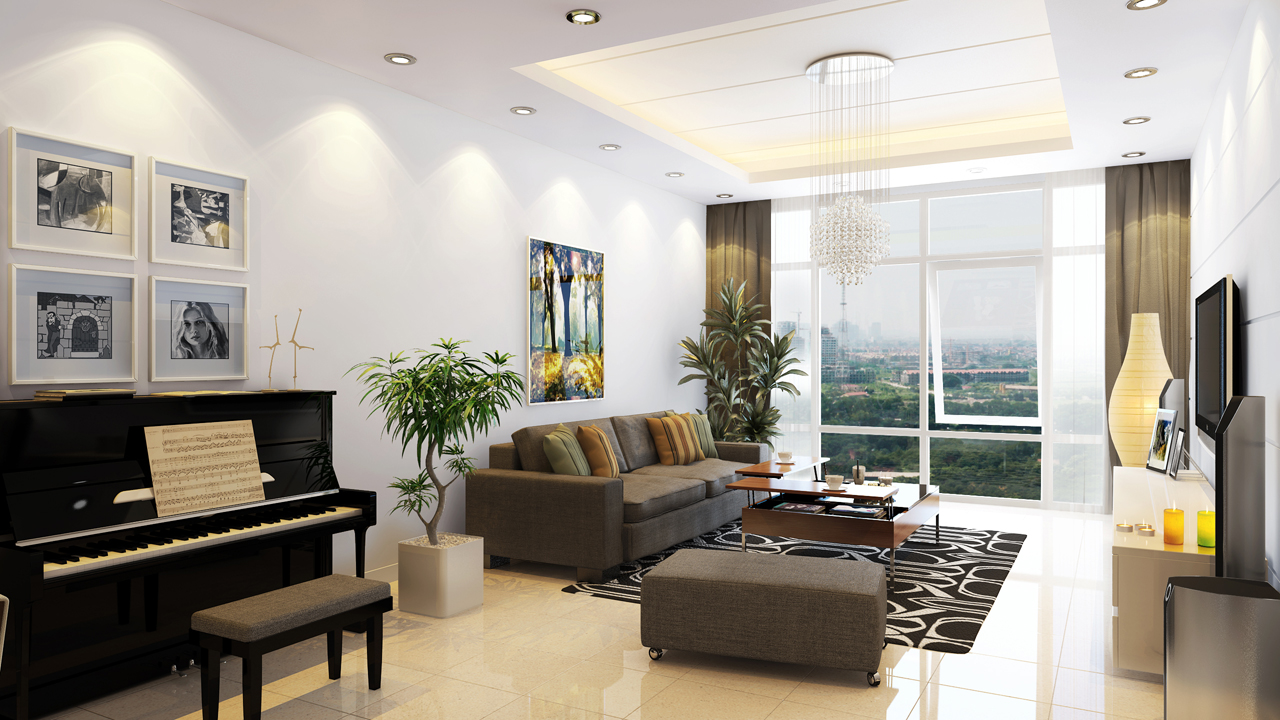 Các không gian phòng khách, phòng ngủ và phòng bếp đều có thiết kế hiện đại và sang trọng với những vật liệu hoàn thiện cao cấp nhất. Từ hệ thống đèn chiếu sáng LED, đèn cảm ứng, hệ thống điều hòa âm tường đến những mảng giấy dán tường, tủ âm tường cao cấp đều thể hiện đẳng cấp của một căn hộ xanh và hiện đại. Bên cạnh đó, khách hàng đặc biệt thích thú với hệ thống điều khiển căn hộ thông minh tích hợp 3 tính năng: điều khiển từ, thông tin liên lạc và cảnh báo an ninh.