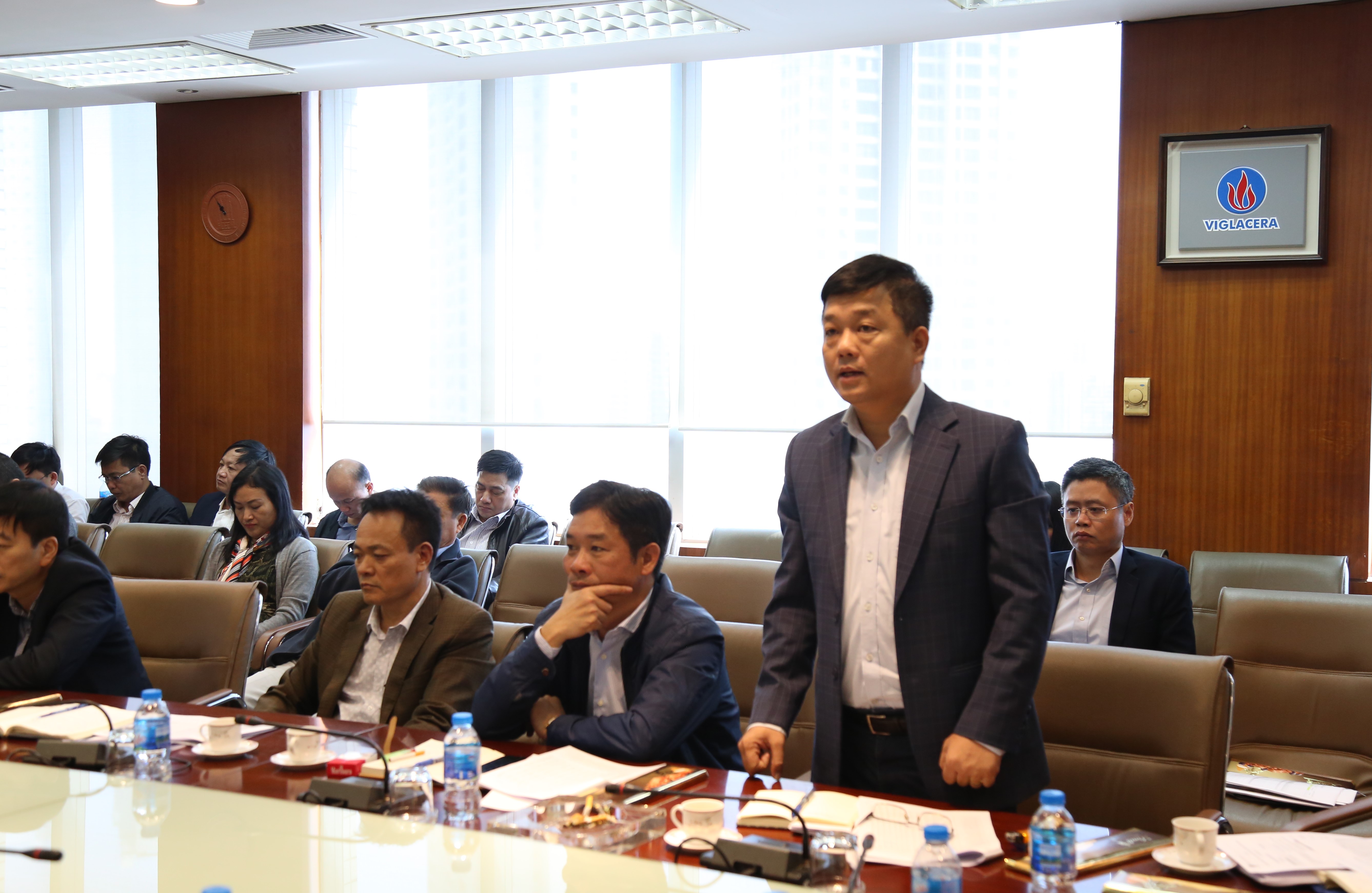 Ông Hoàng Kim Bồng - P. TGĐ phụ trách Ban Kính và Ô Nguyễn Quý Tuấn - Chủ tịch Công đoàn/ Hiệu trưởng Trường Cao đẳng Viglacera báo cáo tại buổi họp