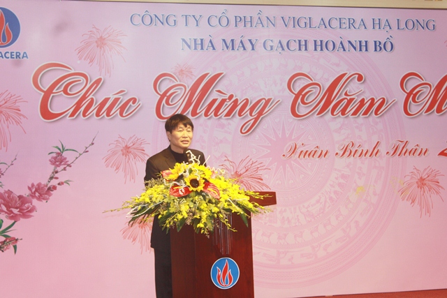 Tại buổi lễ, Tổng giám đốc TCT Nguyễn Anh Tuấn đã gửi lời chúc đầu xuân năm mới tới toàn thể cán bộ CNV LĐ trong Công ty, đồng thời đánh giá thành công bước đầu của dự án chuyển đổi 100% ngói. Với dự án này Viglacera Hạ Long đã bước đầu giải quyết được 3 vấn đề: Thứ nhất là vấn đề môi trường khi chủ trương của Chính phủ là chuyển dần sang sản xuất các sản phẩm VLXD không nung và đối với những sản phẩm yêu cầu thẩm mỹ nhưng chưa có sản phẩm thay thế thì phải chuyển sang sản xuất những sản phẩm mỏng, gián tiếp giảm tối đa tiêu hao tài nguyên thiên nhiên tương ứng với việc giảm tiêu hao nhiên liệu và giảm khí thải ra môi trường; Vấn đề thứ hai là cải tiến công nghệ, nâng cao chất lượng sản phẩm và vấn đề thứ ba là nâng cao năng suất lao động. Từ những vấn đề trên Tổng giám đốc đề nghị Ban Kế hoạch đầu tư, Ban gạch ngói tiếp tục hoàn thiện dự án để nhân rộng ra các đơn vị trong nhóm, đưa chất lượng sản phẩm của các đơn trong nhóm lên đồng đều. Bên cạnh đó Tổng giám đốc cũng đề nghị Công ty CP Viglacera Hạ Long tiếp tục giúp đỡ và hỗ trợ các đơn vị khác trong nhóm để cùng nhau phát triển, giữ vững truyền thống, xứng đáng là đơn vị anh hùng thời kỳ đổi mới và Đảng và Nhà nước đã phong tặng.