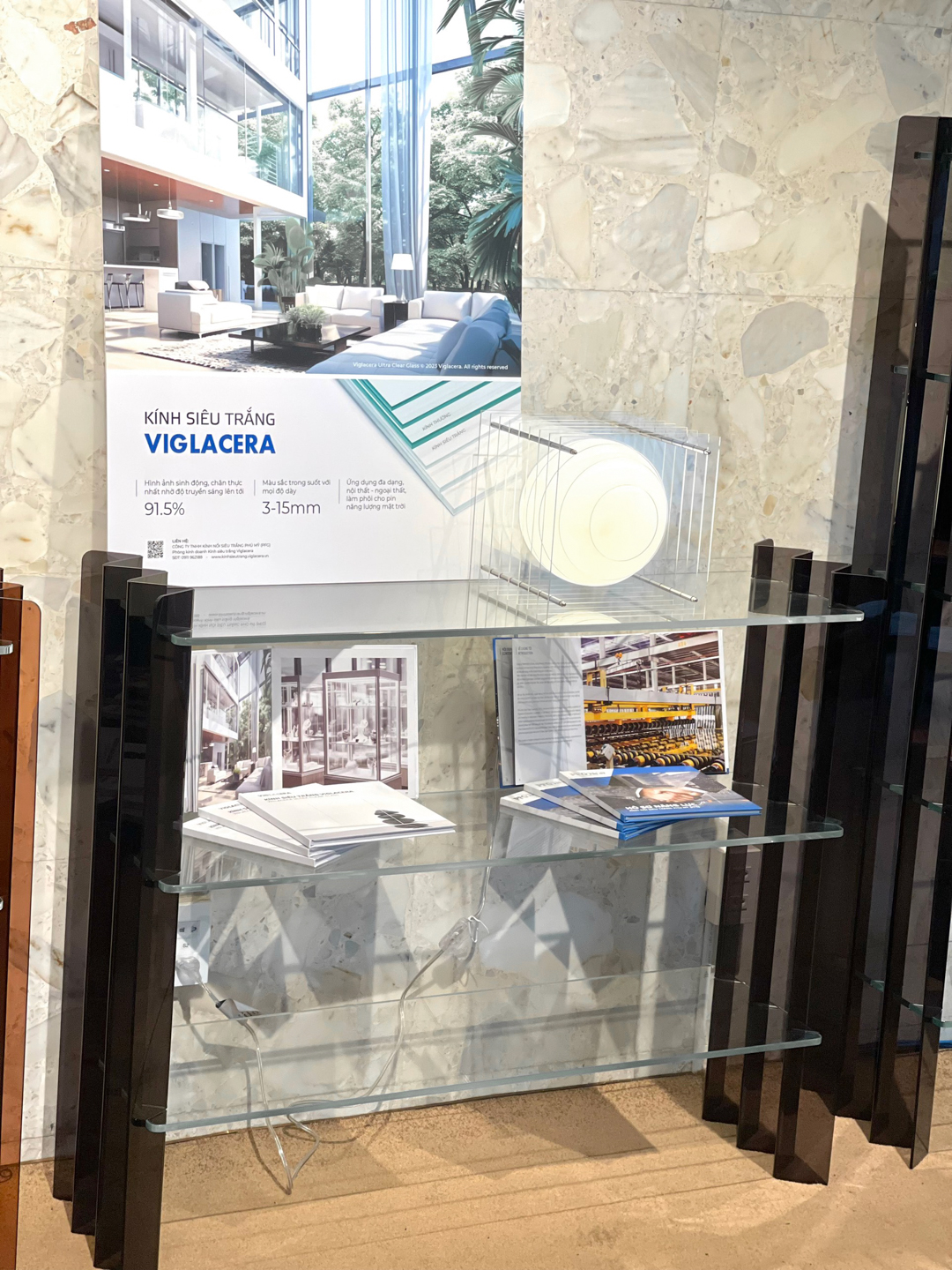 Nhận thấy tiềm năng to lớn của vật liệu mới trong lĩnh vực thiết kế nội thất, Viglacera đã hợp tác cùng Elle Decoration và Kiến trúc sư Nguyễn Đình Hòa để cho ra đời Bộ sưu tập đồ nội thất bằng kính siêu trắng bao gồm các sản phẩm như Bàn Console và kệ WV, bàn phụ Homer, ĐÔN+ Baby Armchair, được thiết kế bởi Kiến trúc sư Nguyễn Đình Hòa với sự tinh tế và sáng tạo, tôn vinh vẻ đẹp nguyên bản của kính siêu trắng.