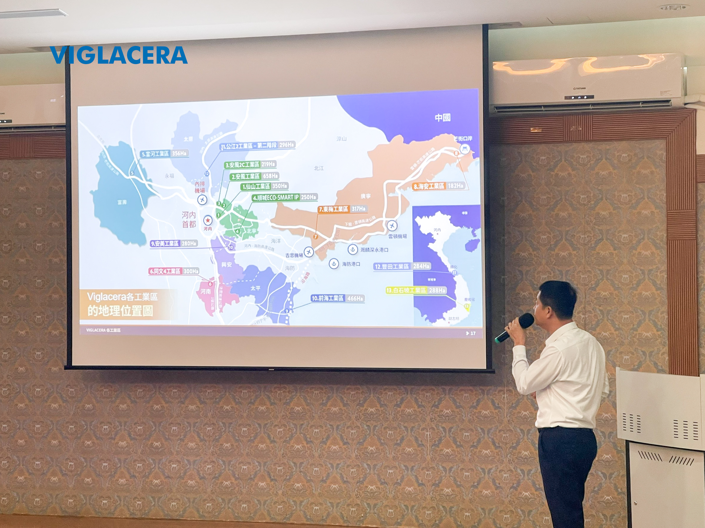 Tiếp theo, ngày 30/05/2024, tại thành phố Cao Hùng, Viglacera đã phối hợp với Bộ Kinh tế Đài Loan (Trung Quốc) tổ chức sự kiện tại Khu công nghiệp Đại Phát – khu vực công nghiệp sôi động nhất thành phố Cao Hùng. Chương trình nhận được sự quan tâm từ hơn 30 doanh nghiệp đang hoạt động trong KCN và có nhu cầu mở rộng sản xuất tại Việt Nam.