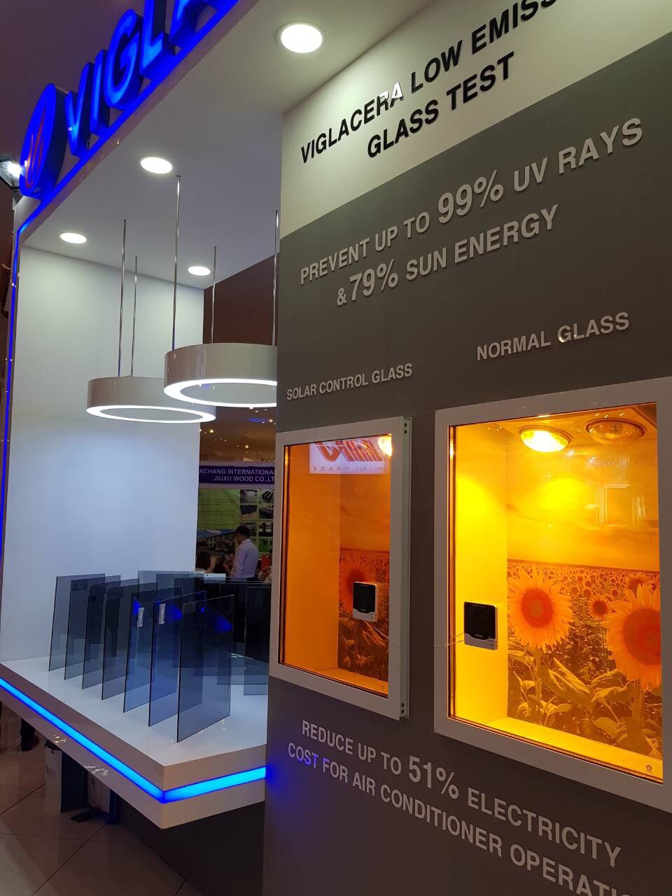 Tham gia Hội chợ Cambodia Construction Industy Expo 2017, Tổng công ty Viglacera – CTCP mang đến những sản phẩm vật liệu xây dựng mới phù hợp với thị trường xuất khẩu như: Gạch ngói đất sét nung, sứ vệ sinh, sen vòi, các sản phẩm gạch ốp lát ceramic, granite và đặc biệt là sản phẩm Kính tiết kiệm năng lượng Viglacera…
