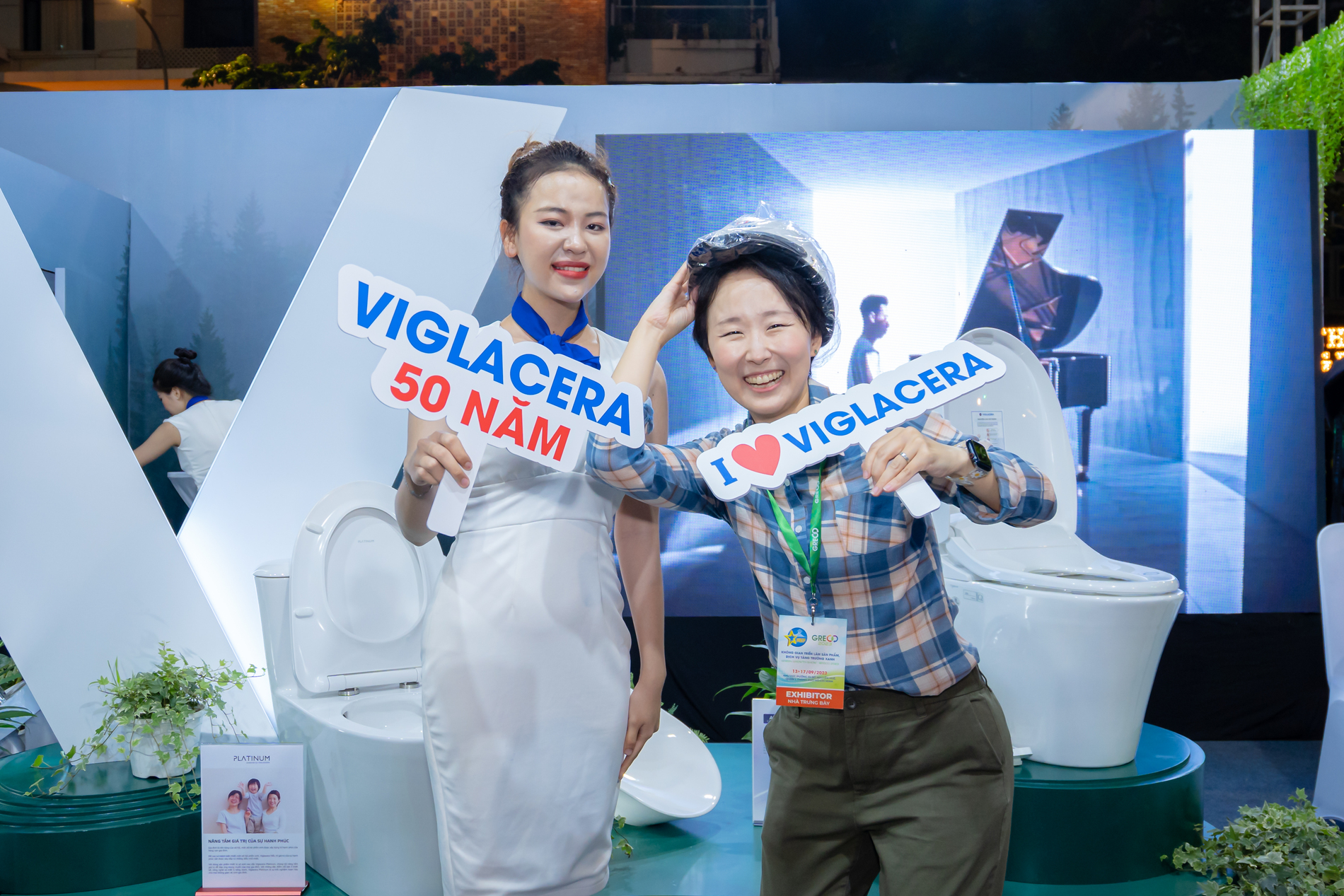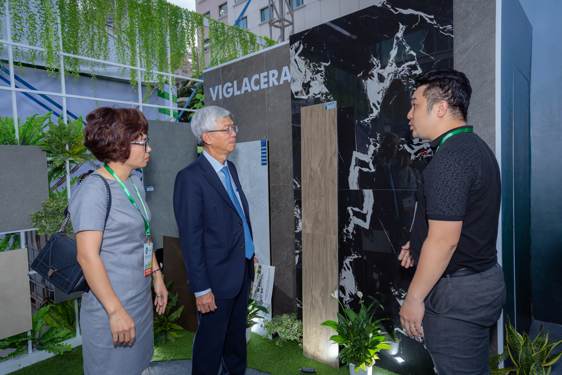 Tham dự tại sự kiện, Viglacera (VGC) -  doanh tiên phong trong sản xuất vật liệu xanh, thân thiện môi trường đã giới thiệu các sản phẩm vật liệu xây dựng được sản xuất trên dây chuyền công nghệ hiện đại của thế giới, cùng các giải pháp định hướng sản phẩm đáp ứng tiêu chí “xanh trong sản xuất” và “xanh trong sử dụng”, giúp thay thế hoàn toàn các vật liệu khai thác tự nhiên. Ghi nhận tại gian hàng Viglacera trong khuôn khổ thời gian diễn ra triển lãm.