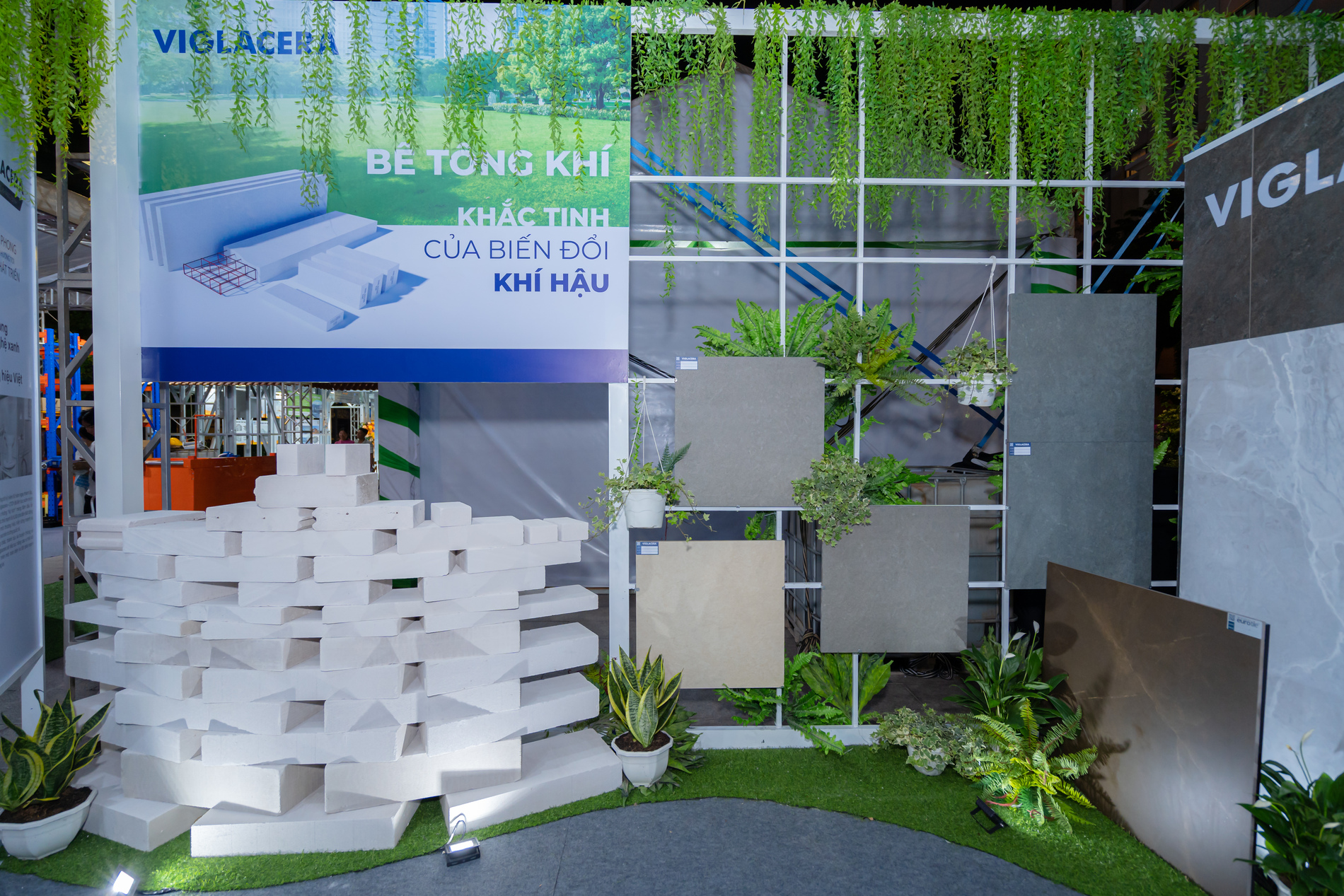 Đặc biệt, Viglacera còn đem tới triển lãm gạch bê tông khí chưng áp AAC và tấm panel ALC được công nhận là thành viên của hiệp hội Singapore Green Council (SGBC). Sản phẩm này tuân theo ba tiêu chí: Xanh trong sản xuất, Xanh trong xây dựng và Xanh trong sử dụng.