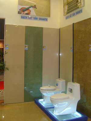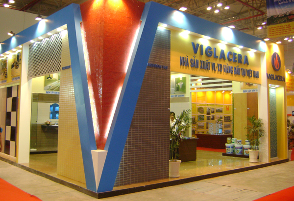 Gian hàng của Viglacera đã trưng bày và giới thiệu các loại VLXD đa dạng và đồng bộ mang thương hiệu Viglacera: Kính xây dựng; Gạch ốp lát nội thất và ốp ngoại thất granit và ceramic; Sứ vệ sinh và phụ kiện; Gạch ngói đất sét nung…