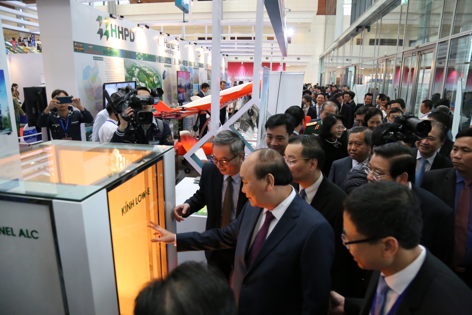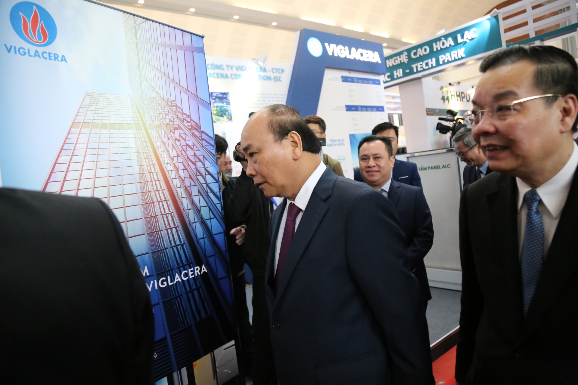 Thủ tướng Chính phủ Nguyễn Xuân Phúc cũng các Lãnh đạo Đảng và Nhà nước thăm quan gian hàng Viglacera