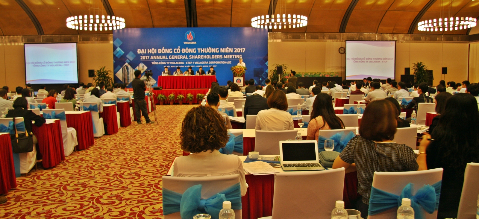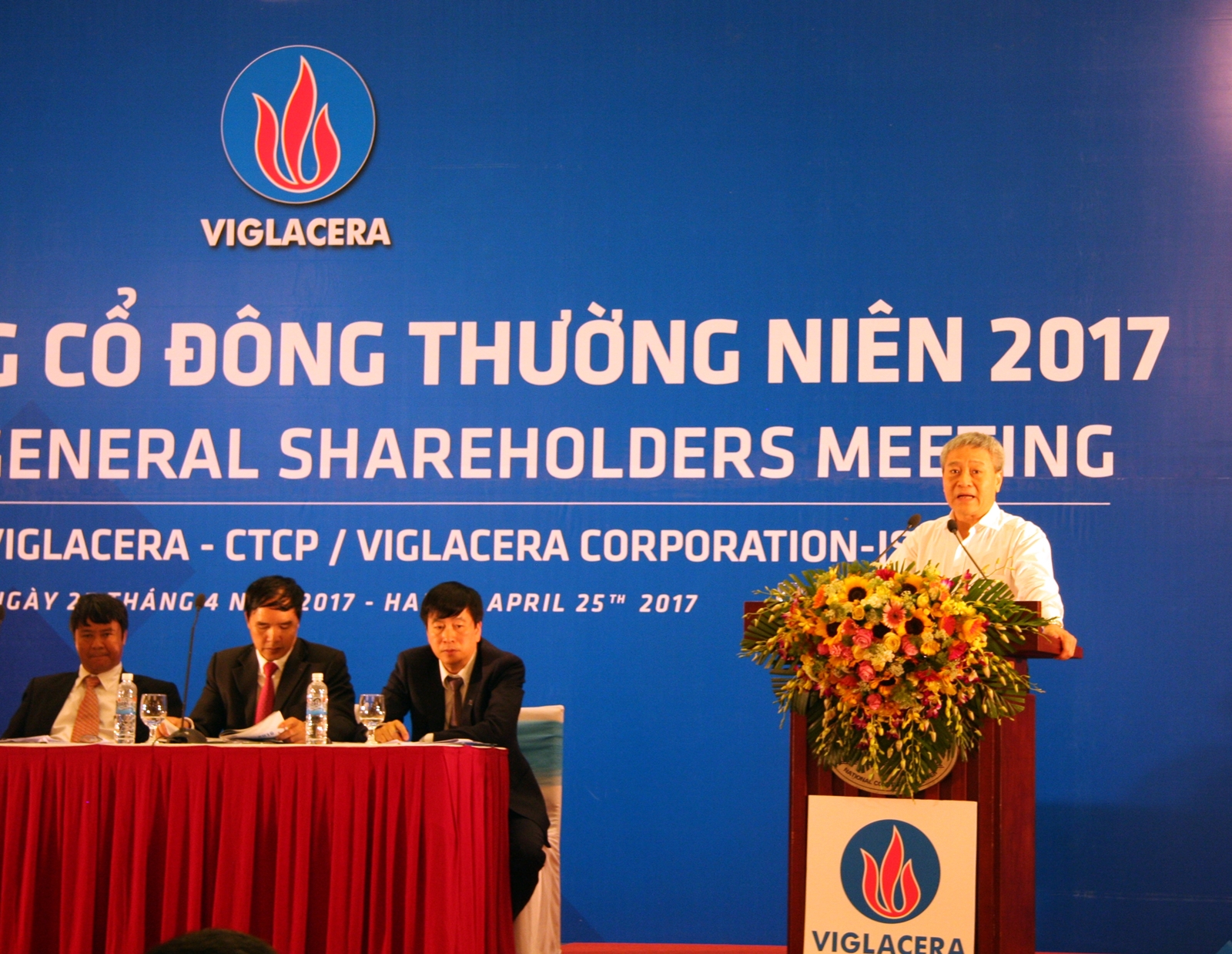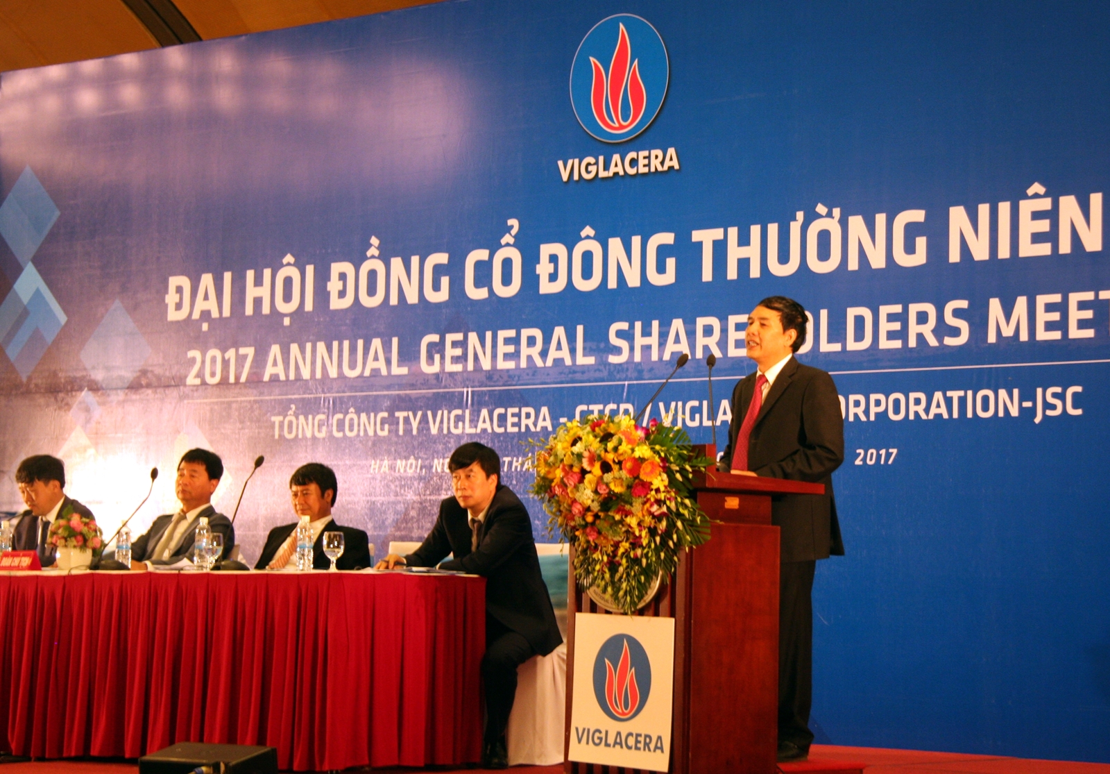 Sáng ngày 25/04/2017, TCT Viglacera – CTCP đã tổ chức thành công Đại hội đồng cổ đông (ĐHĐCĐ) thường niên 2017 tại Trung tâm Hội nghị Quốc gia - số 2 Đại lộ Thăng Long, Hà Nội. Kết quả hoạt động SXKD năm 2016 của Viglacera đã khẳng định hiệu quả hoạt động của Công ty cổ phần do nhà nước nắm cổ phần chi phối bằng việc hoàn thành vượt mức các chỉ tiêu ĐHĐCĐ giao. Để tiếp tục thực hiện chiến lược phát triển bền vững, hiện thực các chủ trương, chính sách của Đảng, Nhà nước và Chính phủ, năm 2017, Viglacera sẽ đầu tư mạnh mẽ vào các dự án công nghệ cao, dự án “xanh” thân thiện với môi trường và đẩy mạnh đầu tư vào các dự án giàu tiềm năng tại Cuba. Bên cạnh đó là việc triển khai phương án phát hành chứng khoán rộng rãi ra công chúng nhằm giảm tỷ lệ sở hữu vốn Nhà nước xuống 56,67% tiến tới giảm xuống dưới 51% đúng theo lộ trình đã được phê duyệt. Mức chia cổ tức năm 2016 của Tổng công ty Viglacera-CTCP là 9,5% tăng 36% theo Đại hội đồng cổ đông đã thông qua.