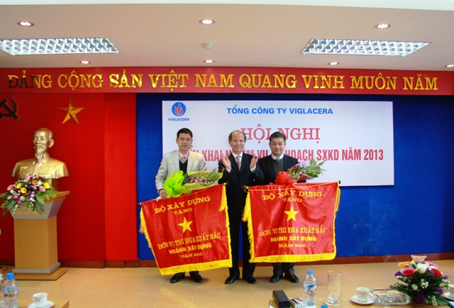 Thứ trưởng Bộ Xây dựng Trần Văn Sơn trao cờ thi đua xuất sắc của Bộ Xây dựng năm 2012 cho Công ty CP Thương mại Viglacera và Công ty CP Viglacera Vân Hải