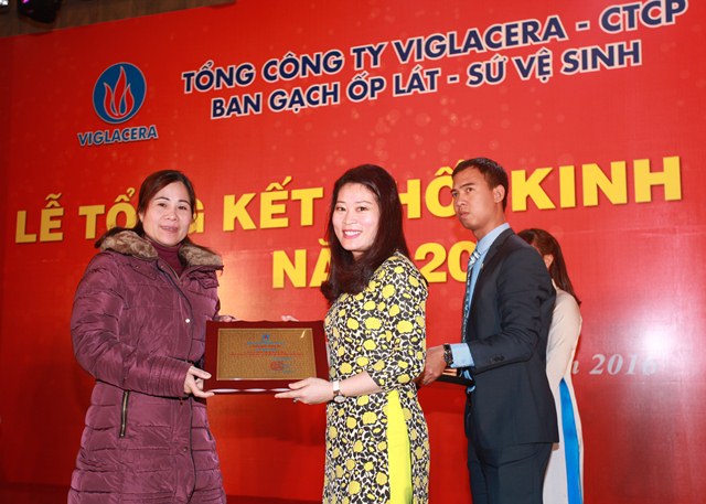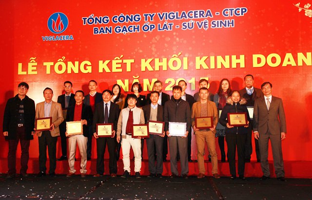 Tại lễ tổng kết, Ban gạch ốp lát - Sứ vệ sinh tiến hành trao thưởng kỷ niệm chương và thưởng hoàn thành KH doanh thu năm 2015 cho các đại lý phân phối gạch ốp lát, sứ vệ sinh., sen vòi Viglacera.