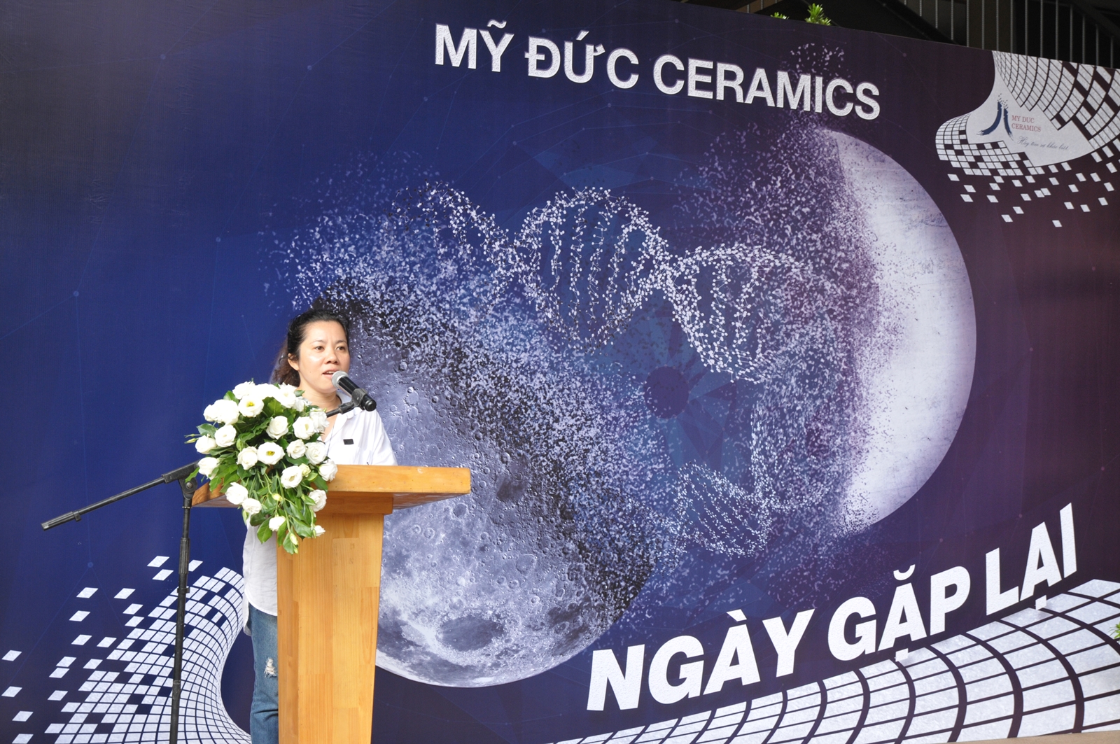 Bà Phan Thị Bích Ngọc - Phụ trách thiết kế Eurotile chia sẻ cảm xúc với các đối tác, khách hàng của Mỹ Đức ceramics