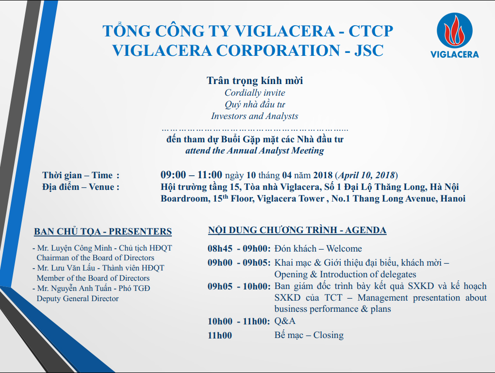 Thư mời tham dự Buổi gặp mặt các Nhà đầu tư - 10/04/2018