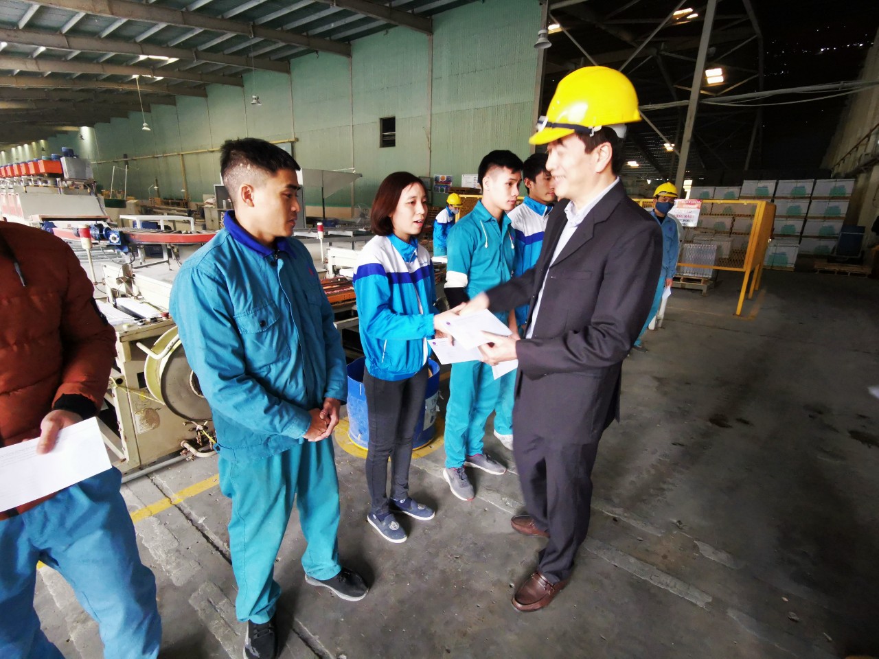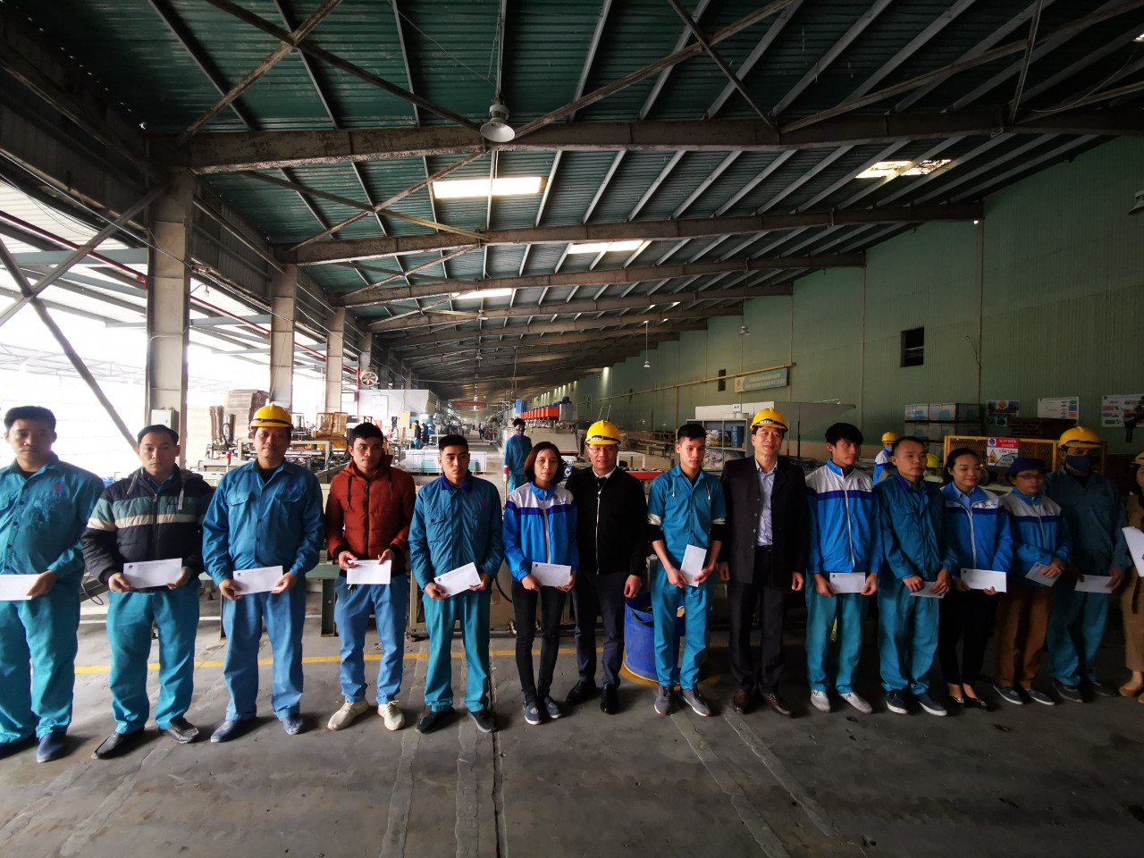 The Corporation's Trade Union assigned the comrades in the Executive commitee to directly visit, encourage and wish Happy New Year to the workers with difficult circumstances working at the factories of the units such as: One Member Limited Company Erection of Viglacera Glass, Viglacera Huu Hung JSC, Viglacera Aerated autoclaved Concrete JSC, Viglacera Tien Son JSC, etc.