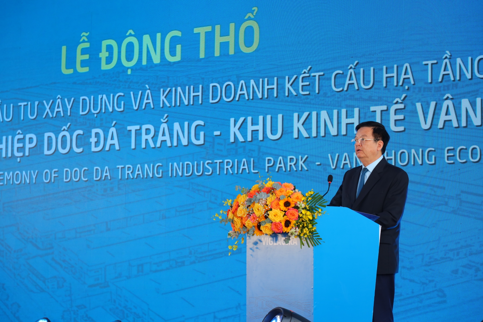 Speaking at the groundbreaking ceremony, Deputy Prime Minister Mai Van Chinh highly appreciated the efforts of Khanh Hoa province, ministries, sectors and investors in implementing the industrial development strategies of the country, region and locality. In order for the Doc Da Trang Industrial Park Project to be implemented on schedule and achieve the expected results, the Deputy Prime Minister requested investors to promote available resources, focus on investment and construction to soon put the project into operation. “The industrial park must be smart, modern and sustainable, forming industrial - innovation - urban - service - high-tech ecosystems; ensuring harmonious development with the community, infrastructure and knowledge-based economic development for the locality. Khanh Hoa Provincial People's Committee as well as relevant ministries and branches support investors to complete the project; guide investors to properly carry out investment, construction and environmental procedures and proactively carry out inspection and supervision work, support investors to promptly resolve difficulties and problems during the implementation process”.