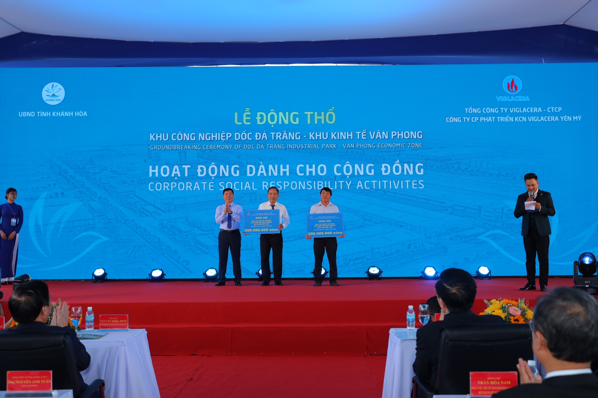 In addition to the goal of economic development, the investor of Doc Da Trang Industrial Park is always deeply aware of its responsibility to the community, contributing to building a sustainable and humane society. With the spirit of mutual love, the investor Viglacera Yen My Industrial Park Development Joint Stock Company has donated to the Fund for the Poor, the Gratitude Fund and the Education Promotion Fund for two localities: Ninh Tho Commune of Ninh Hoa Town and Van Hung Commune (Van Ninh District) with each commune contributing a value of 300 million VND.