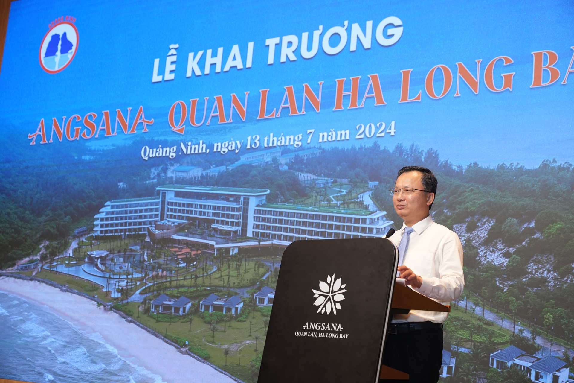 At 11 AM, the ribbon-cutting ceremony for the 5-star Angsana Quan Lan Hotel was conducted, marking a significant milestone for Quang Ninh province and Van Don island district.