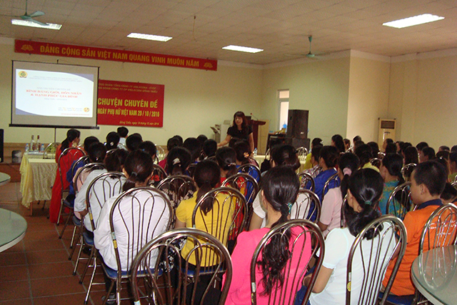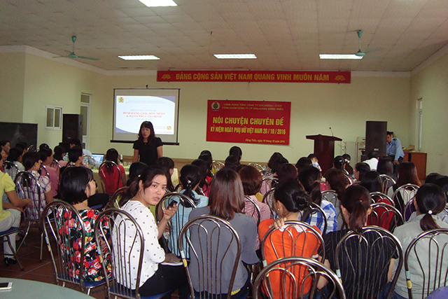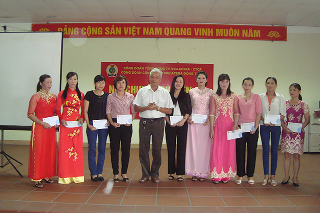 Tại Công đoàn Công ty cổ phần Viglacera Đông Triều tổ chức tuyên dương nữ công nhân viên chức, lao động có thành tích xuất sắc trong phong trào thi đua lao động sản xuất, hoạt động công đoàn và đã mời Chuyên gia Lê Thị Thanh Huyền của Tâm Việt Group nói chuyện chuyên đề về bình đẳng giới, hôn nhân và hạnh phúc gia đình. Thay mặt cho Ban chấp hành công đoàn, đồng chí Nguyễn Quang Toản Chủ tịch đã trao thưởng cho 18 chị em có thành tích xuất sắc trong phong trào thi đua lao động sản xuất và hoạt động công đoàn từ 3 nhà máy và Văn phòng công ty.