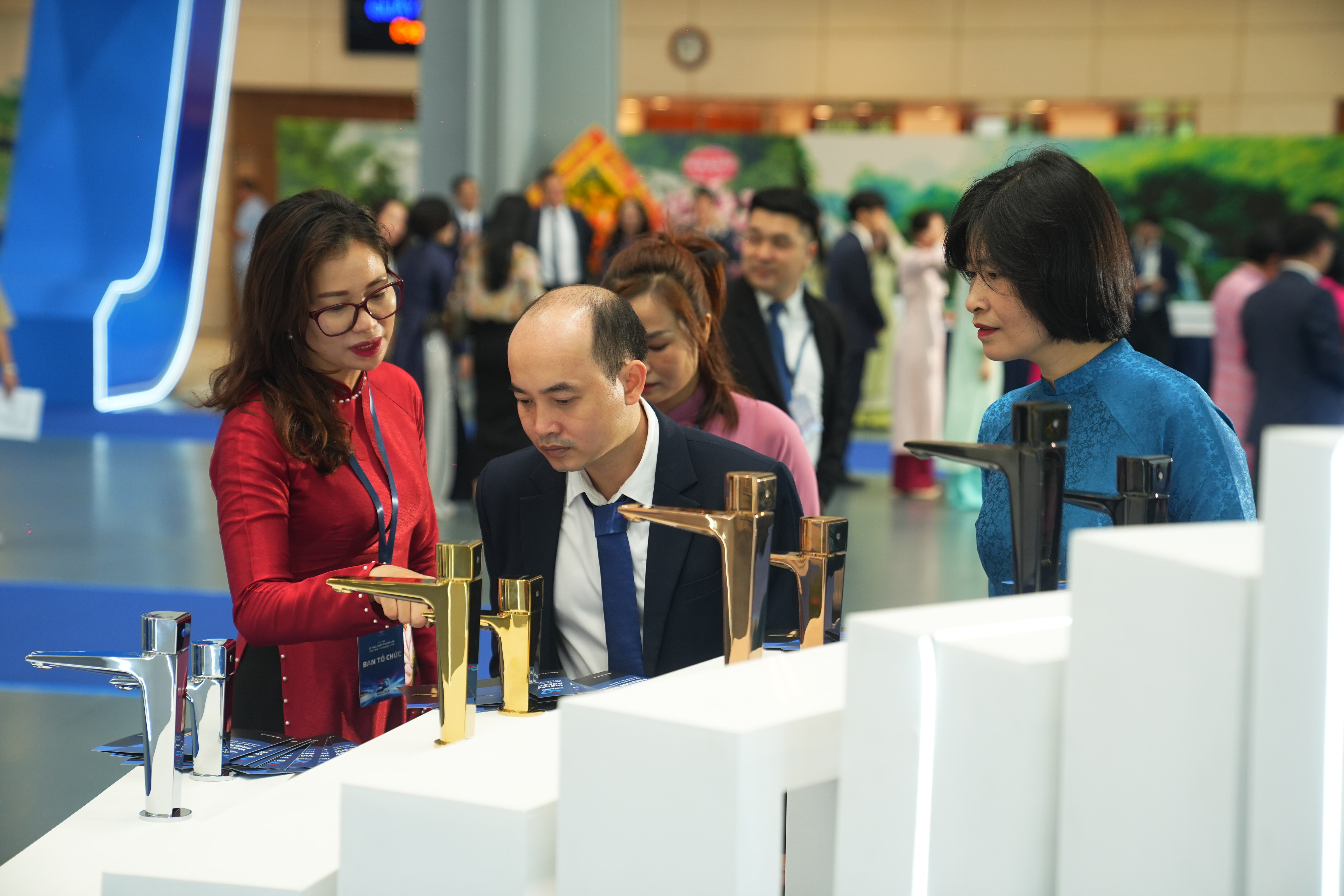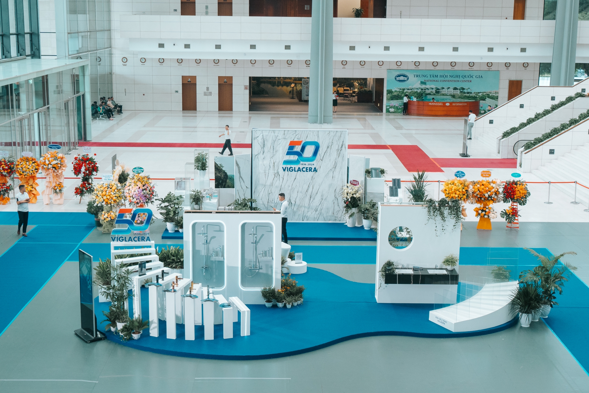 Over the past 50 years, Viglacera has proudly been a pioneering manufacturer in the ceramics and sanitary equipment industry in Vietnam. On the occasion of the company's anniversary, many visitors and partners, both domestic and international, spent a significant amount of time at the exhibition area showcasing the green building materials ecosystem for Viglacera's "from foundation to roof" construction projects.
