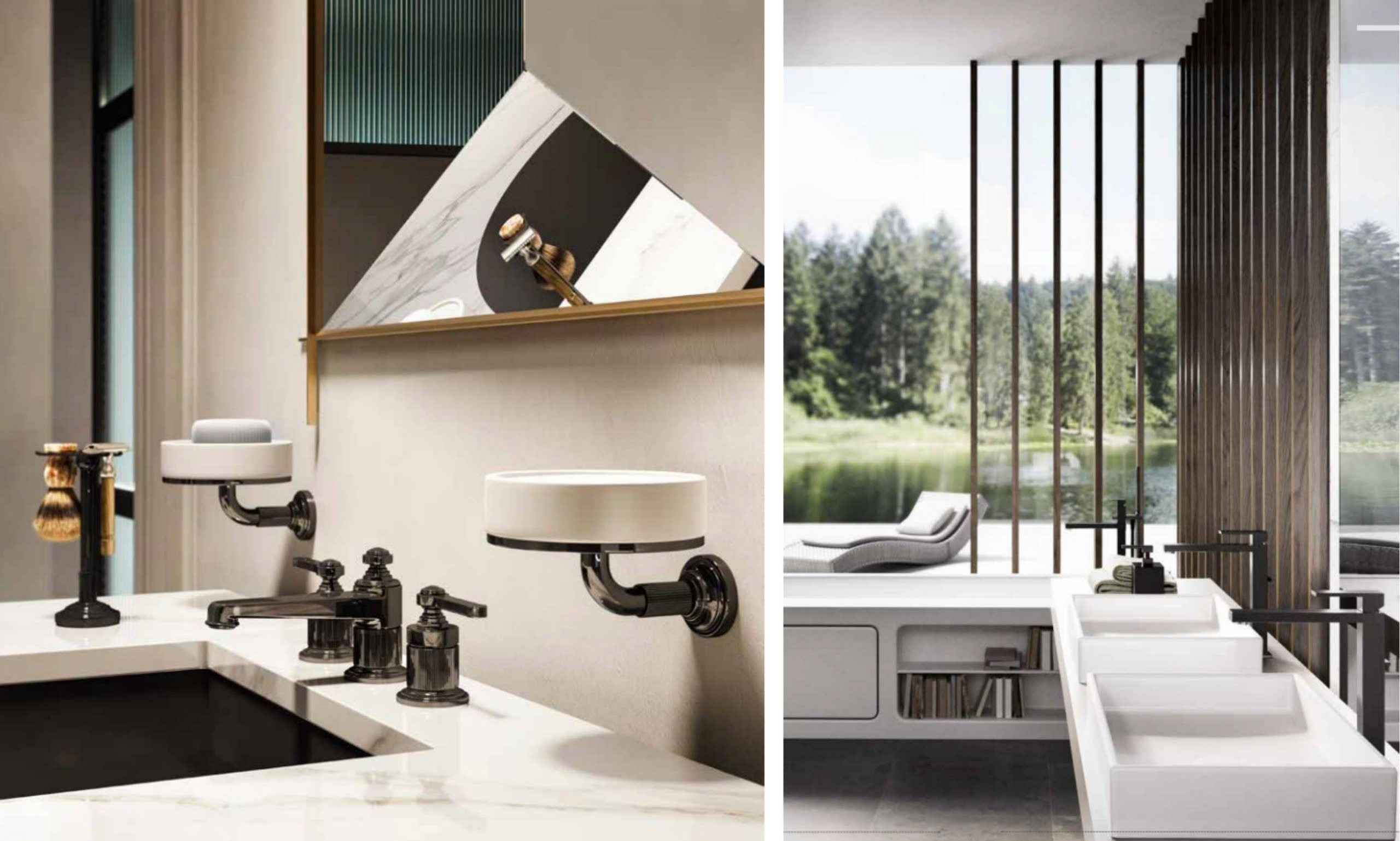 PVD-coated faucets appear in a variety of premium interior spaces, ranging from classic to modern styles (Image source: Gessi)