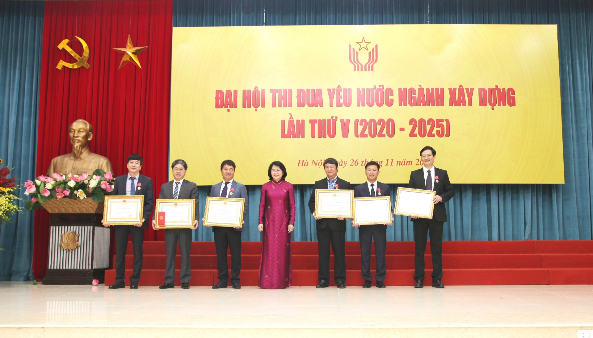 Also at the 5th National Emulation Congress of Construction Industry, Member of the Party Central Committee, Vice President of the Socialist Republic of Vietnam, First Vice Chairman of Central Emulation and Reward Council Dang Thi Ngoc Thinh, on behalf of the Party leaders, awarded the State President's Labor Medal to leaders of Viglacera Corporation - JSC.