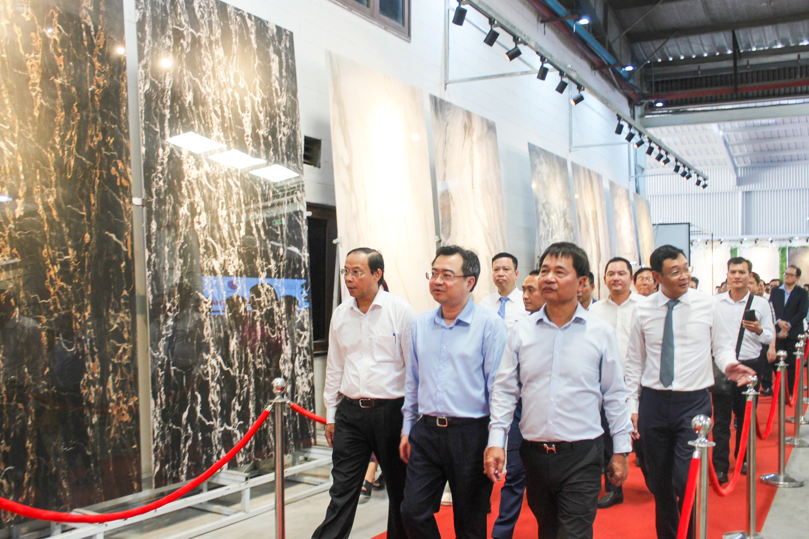 The delegation of delegates took commemorative photos at the largest sintered stone slab in Vietnam.