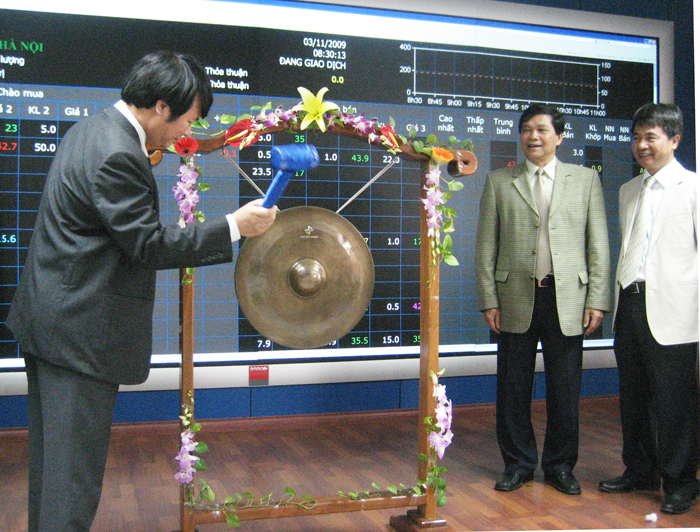 Lãnh đạo TCT Viglacera đánh cồng khai mạc niêm yết