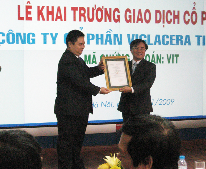 Ông Nguyễn Thế Vinh, GĐ Viglacera Tiên Sơn tự tin chia xẻ với những đầu tư thích đáng về công nghệ và nhân lực, Viglacera Tiên Sơn đã và đang có vị trí vững chắc trong ngành sản xuất gạch ốp lát granít tại thị trường VN cũng như thị trường xuất khẩu. Viglacera Tiên Sơn dự kiến chia cổ tức năm 2009 từ 20-25%.