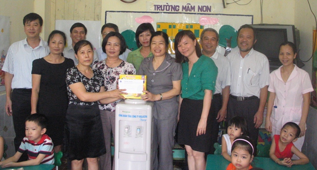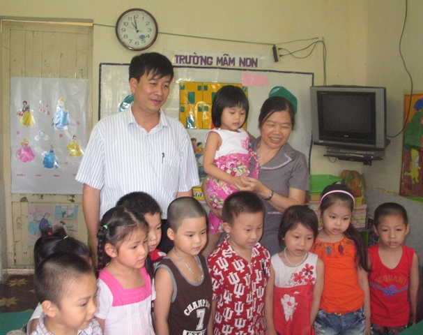 Cùng ngày, Đoàn công tác đã đến thăm nhà ăn ca, thăm hỏi, động viên và tặng quà cho các cháu tại Nhà trẻ mẫu giáo của Công ty nhân Tháng hành động Vì trẻ em Việt Nam năm 2012.